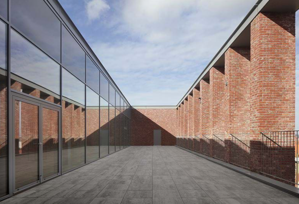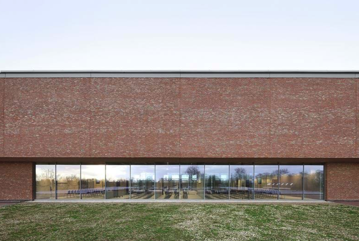 De Veldbrand vormt de perfecte synthese van gevelstenen in de buurt waardoor die het nieuwe beurs- en congresgebouw moeiteloos in zijn omgeving inpast