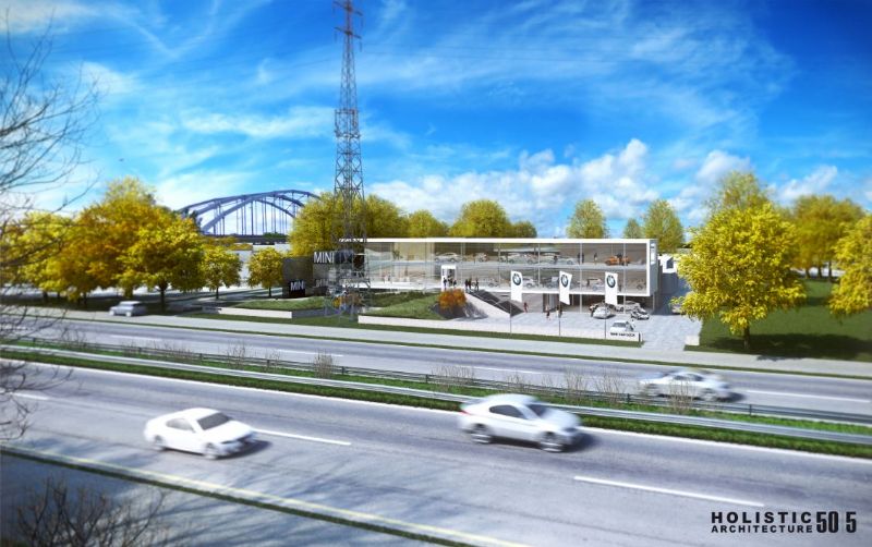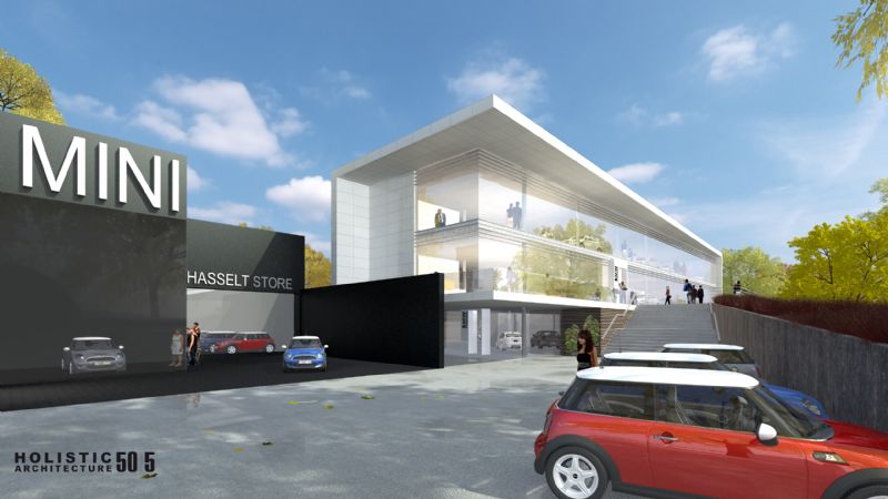 De Duitse autoconstructeur BMW breidt zijn Hasseltse vestiging uit. BMW Van Osch schakelt Holistic Architecture 50|5 in om een aanvullend deel aan de garage op de grote ring te breien. Het resultaat is een opvallende dubbelhoge showroom met dakparking. Het aangrenzende MINI-filiaal krijgt meteen ook aansluiting met de BMW concessie. TDE stond in voor de studies, Mathieu Gijbels staat in voor de constructie.
