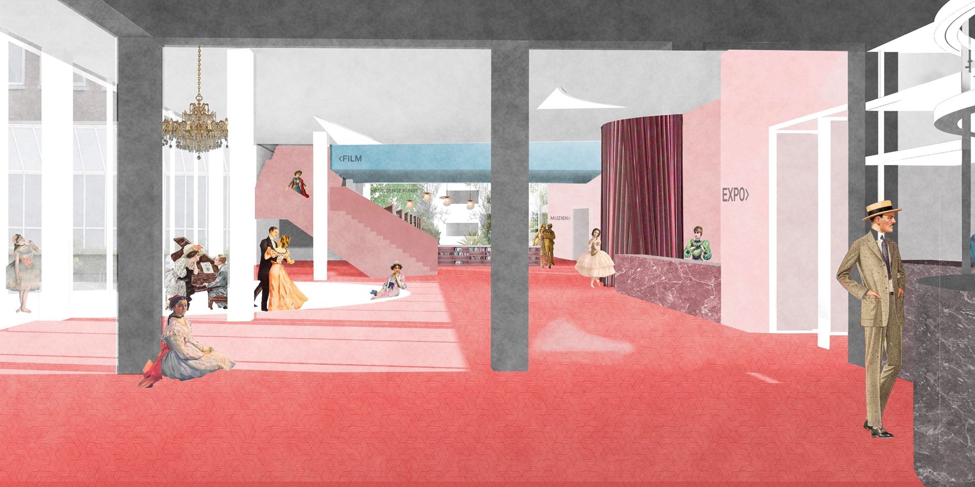 Alle gebouwen op het Cultuurplein zullen via de nieuwe ontvangstruimte in verbinding staan met elkaar, de tuin en de tentoonstellingszalen. Er komen bovendien extra polyvalente ruimtes bij, zoals klassen, lokalen voor artiesten en danszalen. De backstage-ruimtes en toegangen voor leveranciers worden geoptimaliseerd.