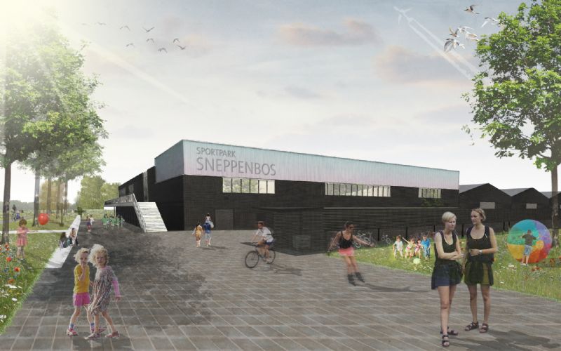 OMGEVING: “De grootste uitdaging voor ons was het uitgebreid programma van eisen: op een beperkte ruimte trachten we een sporthal, drie sportzalen, een polyvalente zaal en een cafataria te organiseren." Door het compact volume blijft er ruim voldoende plaats over voor een uitgebreid sportpark. Het Sportpark Sneppenbos zal een nieuwe pleisterplaats vormen voor het vrijetijdsleven in Boechout en Vremde. “Door de functies te mengen, de compactheid van het gebouw en de verbinding die het sportpark maakt met het achterliggend natuurgebied, past het project zich in het dorpsweefsel in,” aldus OMGEVING.