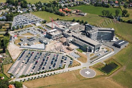 Een eerste project betrof de nieuwbouw-uitbreiding van circa 30.000 m². Dit nieuwbouwgedeelte omvat enerzijds een medisch-technisch blok met vijf bouwlagen: op min één de apotheek, op het gelijkvloers de spoedopname en de dienst medische beeldvorming, op één de dienst intensieve zorgen en het labo en op de tweede verdieping het operatiekwartier. Anderzijds omvat de uitbreiding een beddenvleugel met acht bouwlagen: de nieuwe centrale keuken en cafetaria, het economaat, de polikliniek chirurgie met het locomotorisch centrum en tien nieuwe verpleegafdelingen van elk 31 bedden.