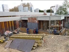 Voor Joris Verhelst van Algemene Ondernemingen Claessens was werken met Foamglas een vrij nieuwe ervaring. Het was dan ook een beetje zoeken naar de juiste verhoudingen, maar het resultaat mag er wezen: “Om mogelijke breuk te vermijden, hebben we in overleg met Foamglas eerst een tien centimeter dikke betonnen werkvloer gegoten en hebben we daarop de isolatieplaten in een cementmortel geplaatst, zodat de isolatie op een perfect vlakke ondergrond kon worden aangebracht,” vertelt hij. “Op de plaatsen waar de kolommen moesten komen, moest de betonplaat dikker worden gegoten, waardoor de Foamglas-isolatie daar dieper kwam te liggen. Er is eveneens zorgvuldig bekeken welke overlap er tussen de verschillende platen onderling nodig was om geen enkele thermische onderbreking te krijgen. Ook de manier van plaatsen en de manier waarop de overgang van de liggende isolatie onder de vloer naar de staande isolatie perfect kon worden uitgevoerd, werd vooraf grondig doorgepraat. Een groot voordeel van Foamglas is dat het makkelijk versneden kan worden met een zaag en dat het veel steviger is dan bijvoorbeeld pur. Foamglas is bovendien volledig waterdicht. Voor een aannemer zijn dat belangrijke bijkomende zekerheden.”