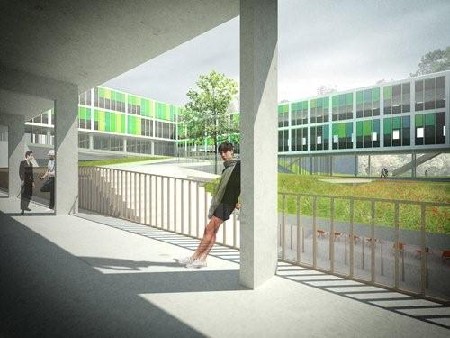 Beide scholen worden gepositioneerd als duidelijk onderscheiden entiteiten binnen één consistent en flexibel geheel. Door de collectieve functies onder te brengen in een centrale en volgens het reliëf gearticuleerde benedenbouw willen de architecten het modernistisch complex - dat nu het terrein verknipt in blinde geïsoleerde stukken - transformeren in een functioneel geheel dat geniet van een ruimtelijke synergie tussen strakke moderniteit en interactieve topografie. Met hun ontwerp willen de architecten verwarring en desoriëntatie omzetten in leesbare heldere ruimtes die het kader vormen voor een kwalitatieve, flexibele, duurzame en betaalbare leeromgeving voor alle leeftijdscategorieën.