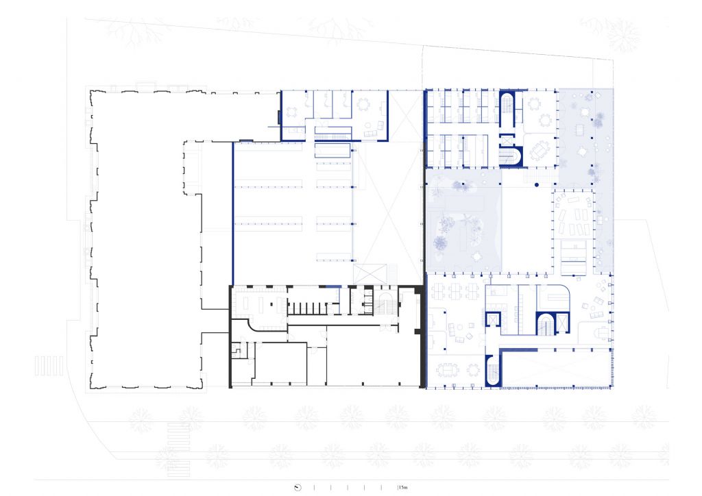 Het centrum is opgevat als een gebouw dat ons verbindt en ons in contact brengt met de stad, de natuur, het park en de veelheid aan culturen die Brussel kenmerken. Het biedt een veelzijdige en open ruimte op de begane grond met een goede sociale controle die 24 uur per dag, 7 dagen per week actief is. Tegelijkertijd is het ook een plek waar men alleen kan zijn zonder zich eenzaam te voelen.