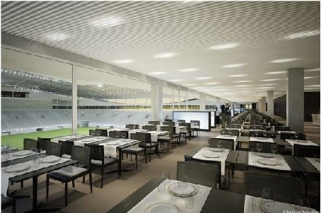 In de eerste plaats is het gebouw ontworpen als voetbalstadion. Centraal van het compacte geheel ligt de grasmat met daarrond 20 000 zitjes waarvan 18 300 gewone zitjes, 1260 business-seats, 240 sky-box seats en 200 plaatsen voor gehandicapten. Deze zitjes worden ontsloten door 8 toegangen ‘vomitoria’ die naar de ‘promenade’ op de rondgang ter hoogte van de 2de verdieping leiden. Op de rondgang wordt er ambiance en sfeer gecreëerd door een combinatie van drank- en voedingsstandjes, supportersrestaurants en publicitaire standen. Via de ‘promenade’ zijn ook de toiletten en hulpposten bereikbaar. De business-seats en skyboxen worden via een aparte VIP toegang ontsloten die aan de linkerkant van het stadion zit. Deze ingang wordt intern geaccentueerd door een monumentale vide met trap.