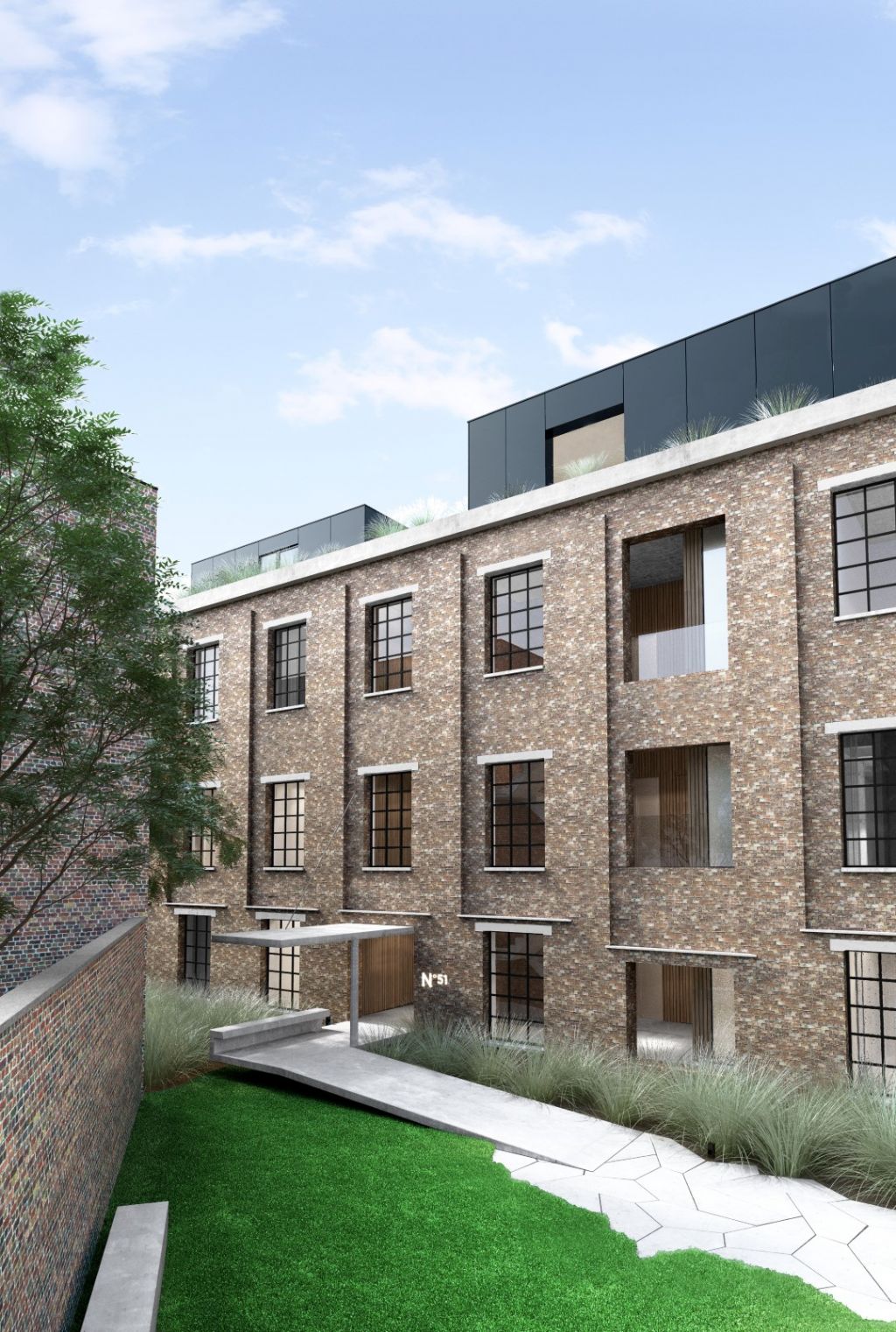 Het pakhuis bestaat uit een mix tussen oude en nieuwe materialen. De ramen zijn groot, maar met allemaal kleine vierkante ruitjes die het karakter bewaren. Op het dak worden penthouses gerealiseerd met de nodige groenaccenten die een apart gevoel geven, maar ook privacy bieden aan de bewoners. De toren N°49 is een gebouw met veel verspringingen en is de eyecatcher van de site. Het gebouw wordt afgewerkt in natuursteen om het nog strakker te laten lijken en ook de kwaliteit van de omgeving te verhogen. Caan architecten ging hiervoor in zee met KJK-group.