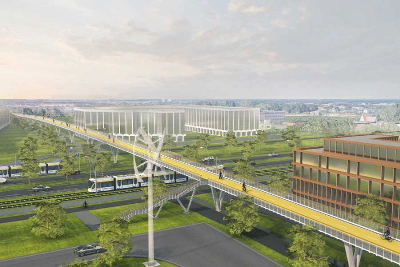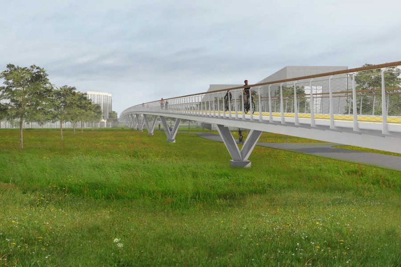 In Machelen is vandaag de eerste symbolische meter gelegd van de langste fiets- en voetgangersbrug van Vlaanderen. Architectenbureau ZJA tekende, als onderdeel van studiebureau MoVeR0 dat verder bestaat uit Sweco, Arcadis, Frank van Hulle, Cluster en Mint en in opdracht van de Werkvennootschap, het architectonisch ontwerp van de fietsbrug over de A201 Leopold III-Laan. Met een totale lengte van 710 meter - een brugdek van 510 meter en aanloophellingen van 200 meter - is de fietsbrug een opvallende verschijning in het stadslandschap. De bouw start in december en de brug zal in 2024 in gebruik worden genomen.