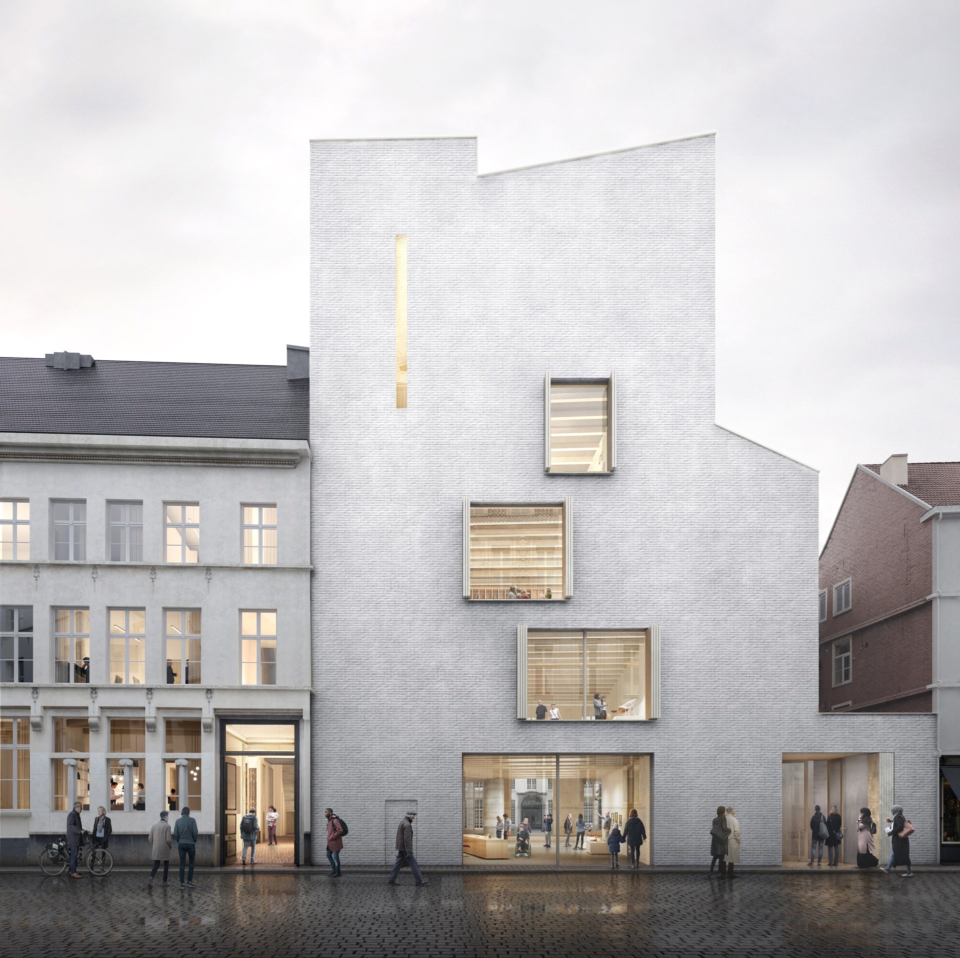 De technieken, de ruimte voor de art handling en restauraties, de toiletten en de vestiaire komen op de ondergrondse verdieping van DING en vleugel 1992. In het aanpalende 16de-eeuwse Huis Leten komt tot slot een museumcafé met zicht op een verborgen binnentuin aan de achtergevel.