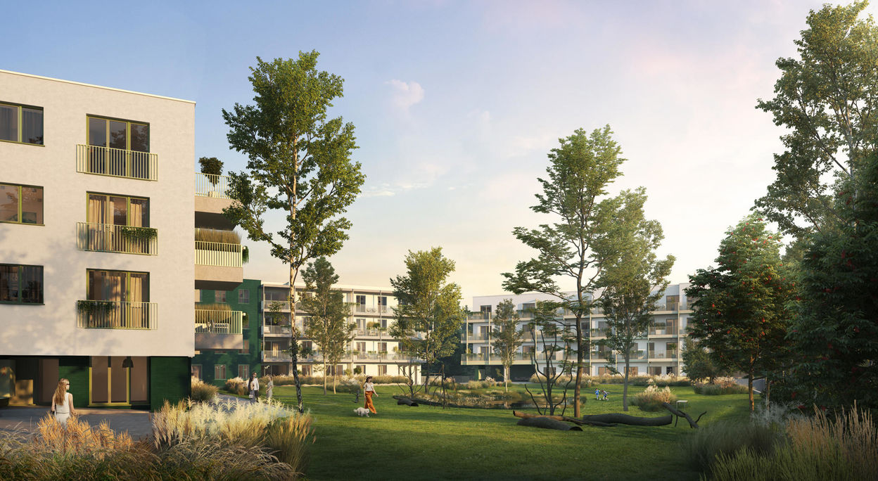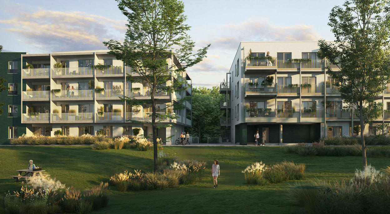 De gebouwen worden met elkaar verbonden door een centraal plein waar bewoners elkaar kunnen ontmoeten, met daaronder een halfondergrondse parking. Tot slot komt er aan de andere kant van het project een groot park met speeltuigen en wadi’s. De werken duren tot na de zomer van 2026. In een tweede fase komt er nog een zevende gebouw voor sociale huisvesting, een voorwaarde van de Stad Gent en Sogent. Dat gebouw zal 48 appartementen tellen.