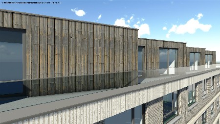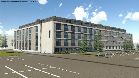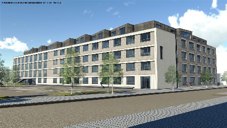 Het schaalniveau van de omliggende gebouwen wordt hernomen in het nieuwbouwproject en het bouwvolume wordt geïntegreerd in een nieuw aangelegde parkomgeving. Er wordt gestreefd naar een sobere en duurzame uitstraling die aansluit op de bestaande context. Dit wordt gerealiseerd door het hernemen en herinterpreteren van geveldetailleringen, materiaal – en kleurgebruik van de omliggende gebouwen.
