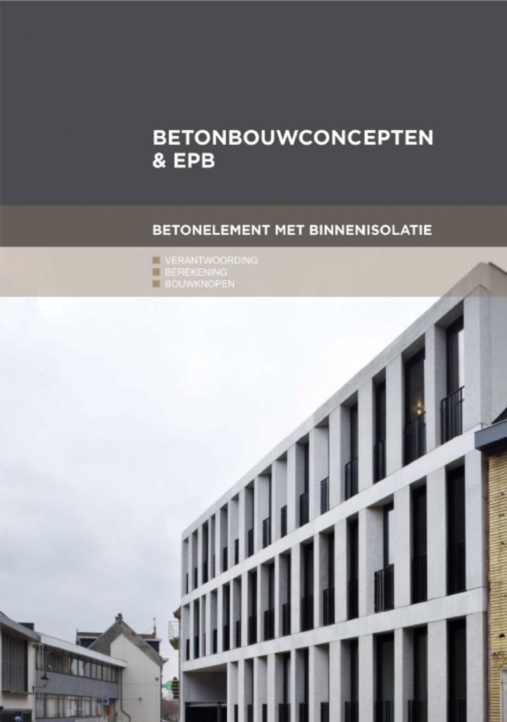 In 2012 publiceerde FEBELCEM een dossier met drie reeksen bouwknopen, representatief voor de meeste courante betonbouwconcepten: de spouwmuur in betonmetselwerk, de enkelvoudige betonwand aan de buitenzijde geïsoleerd en afgewerkt met een crepi en het sandwichpaneel in architectonisch beton. FEBELCEM voegde recent een nieuwe reeks toe: beton met binnenisolatie.