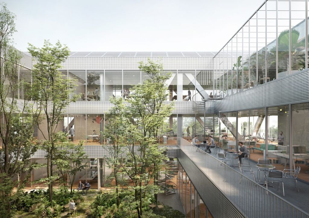 John Eyers (Architect, Jaspers-Eyers Architects): “Het ontwerp draait om de ontmoeting tussen mensen. Een open, centrale trap verbindt de werkvloeren en gemeenschappelijke delen. En ook daar staat interactie centraal dankzij de aanwezigheid van verschillende tuinen en aangename ontmoetingsplekken.”