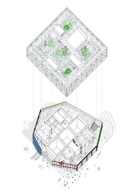 Een duurzaam gebouw met vijf binnentuinen en een compacte voetafdruk