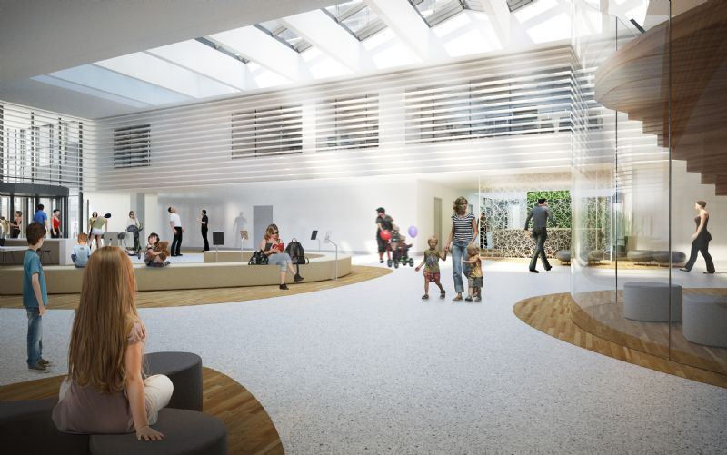DJGA hecht in het interieurontwerp van het Vrouw- en Kindziekenhuis veel waarde aan een prettige beleving voor toekomstige patiënten. Een ruime entree met een grote centrale binnenstraat verwelkomt bezoekers van het gebouw. “Om de omgeving van patiënten en bezoekers zo aangenaam mogelijk te maken, hebben we gekozen voor veel glas in het ontwerp,” zegt Maurits Algra, architect en directeur bij dJGA. “De zes daglichtpatio’s in het hart van het Vrouw- en Kindziekenhuis zorgen ervoor dat het daglicht op alle niveaus doordringt in het gebouw. Door het gebruik van okerkleurige gevelstenen krijgt het ziekenhuis een frisse en lichte uitstraling.” Een vriendelijk kleurgebruik en de lichte, transparante materialen moeten kinderen snel op hun gemak laten voelen. Het ziekenhuis bestaat uit twee gebouwen, een glazen loopbrug verbindt beide gebouwen met elkaar. Het ziekenhuis heeft ook een dakterras, toegankelijk voor de kinderen en hun familie.