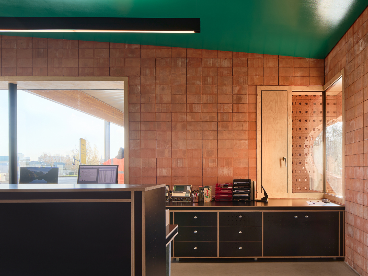 Bovenbouw Architectuur kiest voor een beperkt maar expressief materialenpalet van prefabbeton, rode industriële baksteen, gelamineerd hout en verzinkt staal. Die elementen ontmoeten elkaar in scherpe, soms onverwachte combinaties, zonder hun eigen karakter te verliezen. Het resultaat is een architectuur die robuust oogt, maar toch verfijnd is in detail en aansluiting vindt bij haar industriële omgeving.