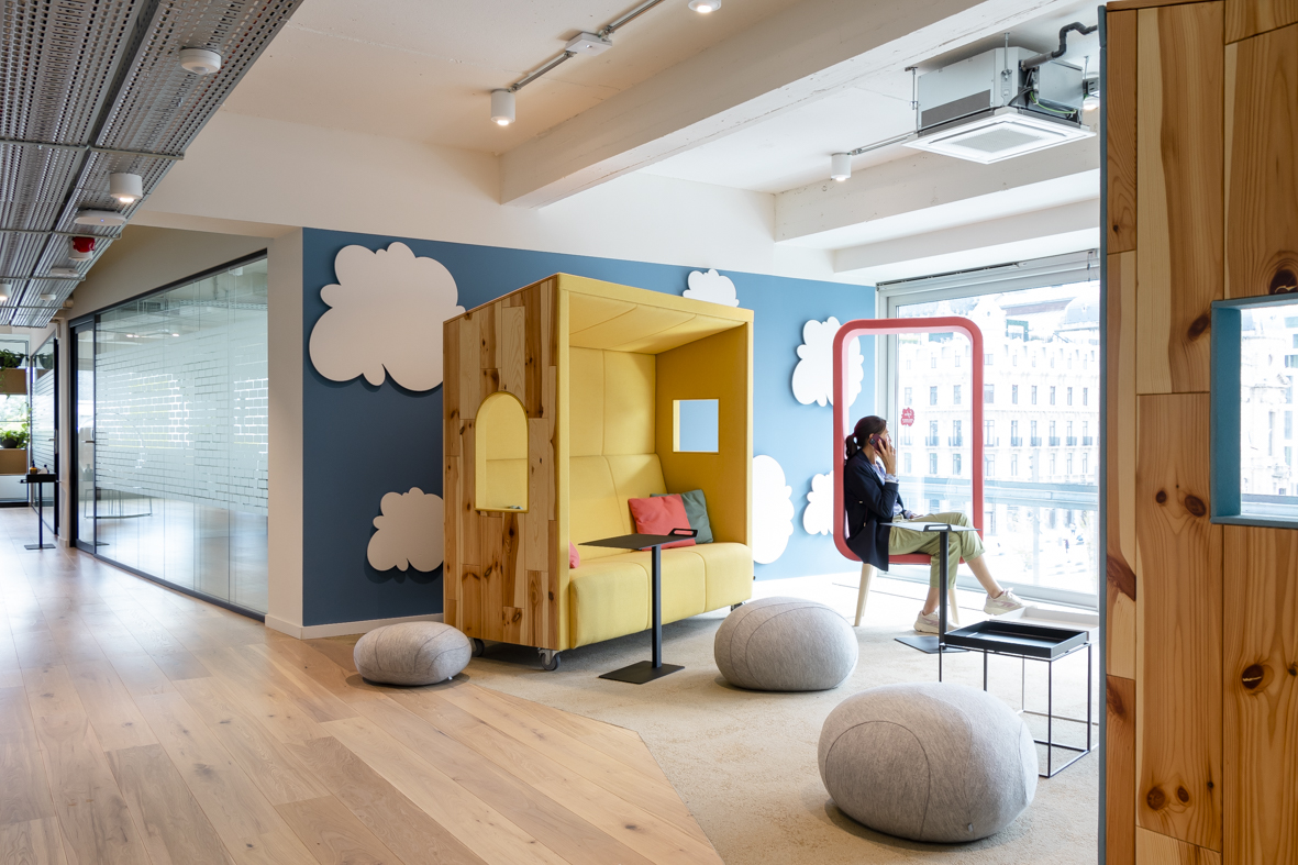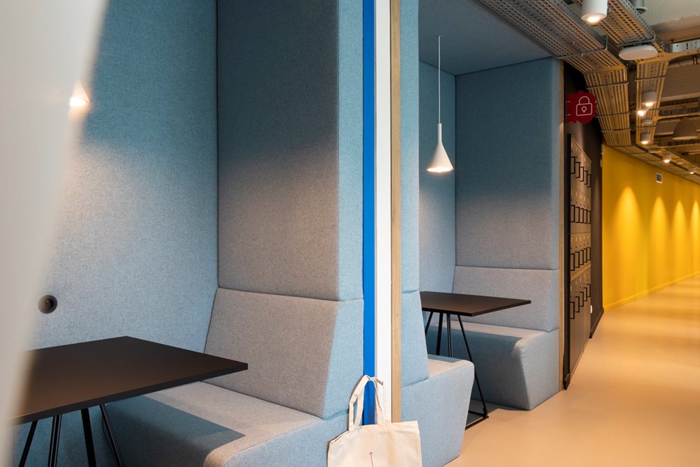 De inrichting is flexibel en past zich voortdurend aan de noden van de gebruikers aan. “Zo wordt er na Corona veel meer getelefoneerd, wat aanleiding was om bijkomende Phone Boots te bestellen” licht Mieke Deroo toe. “Naar de toekomst is beslist om een podcast ruimte in te richten, omdat organisaties dit communicatiemiddel steeds meer inzetten”.