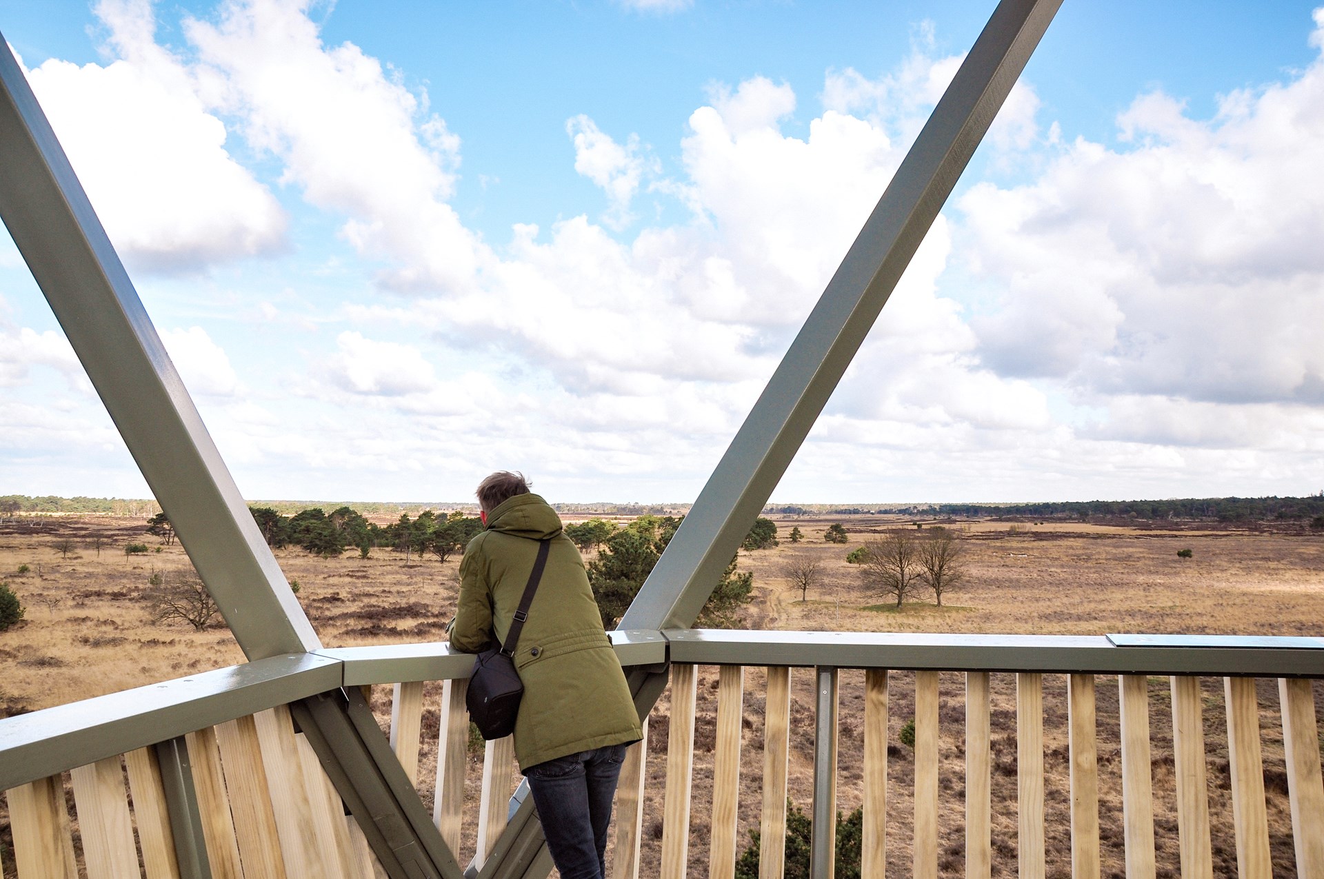 Wandelaars krijgen vanaf twee platforms een indrukwekkend vergezicht over de ‘Vlaamse steppe’. Het ontwerp kenmerkt zich door een spectaculaire eenvoud, dienend aan het landschap van de Kalmthoutse heide, met een comfortabele werkplek voor de brandwachters en een dynamisch uitzicht op de natuur.