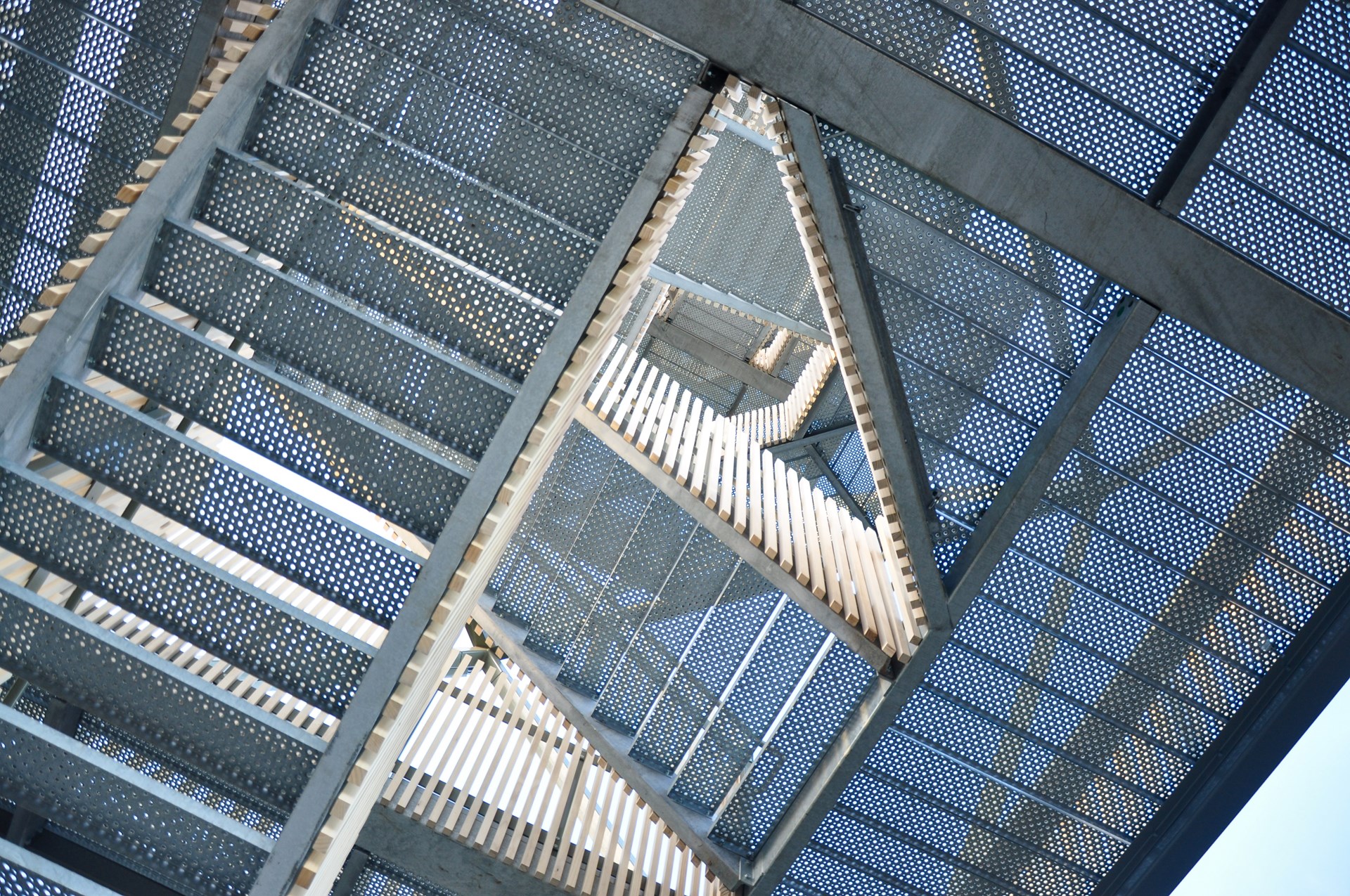 Binnen de stalen vakwerkconstructie vormen de trappen en platformen een houten kern die contrasteert met het stalen vakwerk. De trappen zijn afwisselend in alle windrichtingen georiënteerd. Het dynamische beeld dat dit oplevert doet denken aan de penrose-trappen van Esscher. De route naar boven is een belevenis op zich. Hierdoor ontstaan voor de toerist steeds wisselende uitzichten op de omgeving en kan het natuurschoon goed worden ervaren.