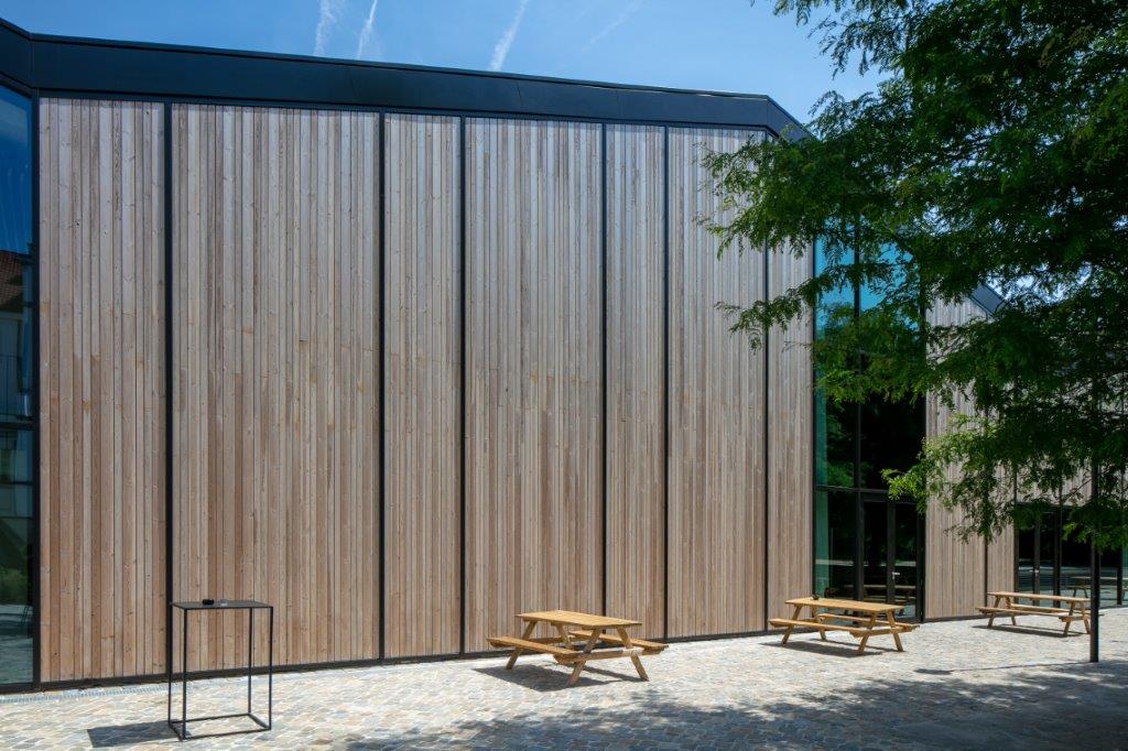 Niet enkel duurzaamheid is een belangrijk aandachtspunt bij houten gevel- en wandbekleding. Ook op het vlak van brandveiligheid gelden er strikte richtlijnen, die afhangen van het type en de hoogte van een gebouw. “Houten gevel- en wandbekleding op middelhoge gebouwen – lees: tussen 10 en 25 meter hoog – en lage gebouwen waar niet-zelfredzame mensen verblijven (crèches, ziekenhuizen …) moeten respectievelijk voldoen aan brandreactieklasse B-s3,d1 en brandreactieklasse C-s3,d1, wat per houtsoort moet worden aangetoond via een classificatierapport op basis van testen”, legt Geoffrey Moerman uit.