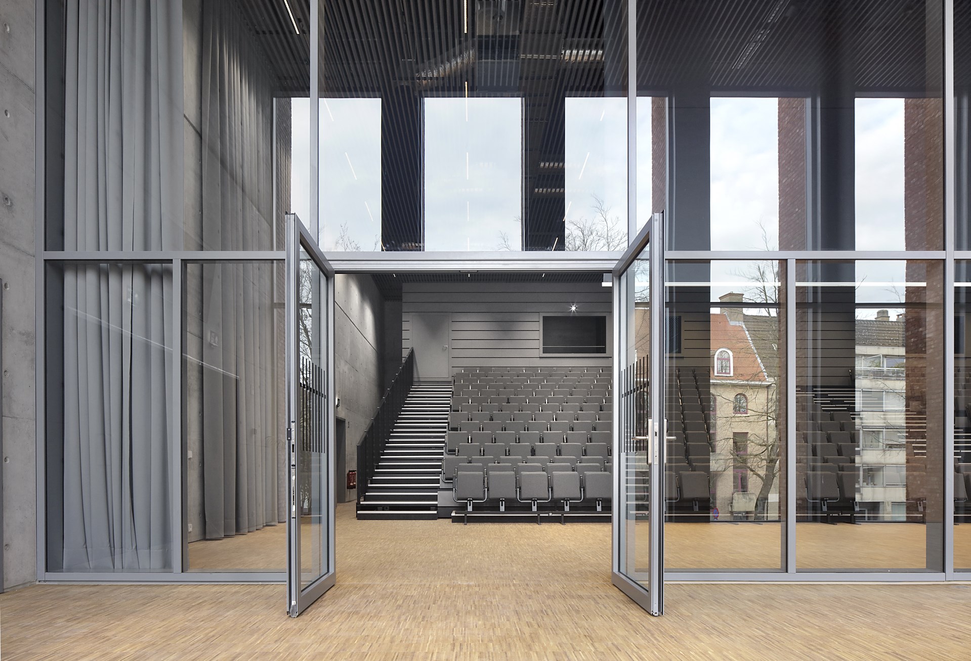 ● Een opsplitsbaar auditorium met een inschuifbare tribune voor ruim 500 bezoekers