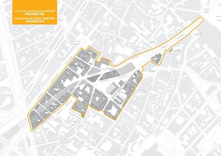 Het modelproject van het DWC Jonction grijpt in op de publieke ruimte rond het bovengrondse deel van de Noord-Zuidverbinding, dat het centrum van de hoofdstad in twee aparte wijken verdeelt: de Marollen aan de ene kant en de wijk Stalingrad/Lemonnier aan de andere.