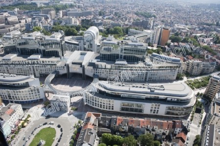 Vanuit de helikopter viel ons ook op de cirkelvormige loopbrug voor de nieuwe gebouwen van het Europees parement. In het kader van de uitbreiding van de Europese Unie, werd naast de gebouwen Paul-Henri SPAAK (D2) en Altiero Spinelli (D3), 2 nieuwe blokken opgetrokken (D4 en D5). Om deze verschillende gebouwen met elkaar te verbinden, werd een bijzondere metalen voetgangersbrug gebouwd op de as van het Luxemburgplein, wat het Europees Parlement meteen ook een grootse protocollaire ingang biedt. De voetgangersbrug die de gebouwen D3, D4 en D5 met elkaar verbindt is een sterk staaltje ingenieurswerk van VK Engineering! De cirkelvormige loopbrug meet aan de buitenzijde 60 m diameter en loopt perfect symmetrisch ten opzichte van het Luxemburgplein. Ze rust op 8 kolommen en weegt maar liefst 280 ton.