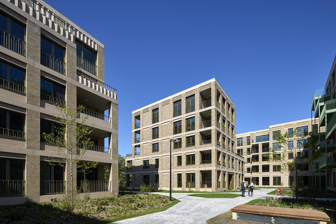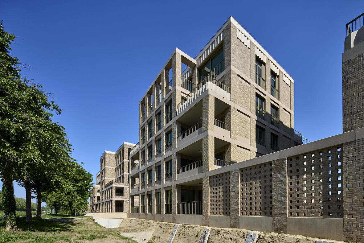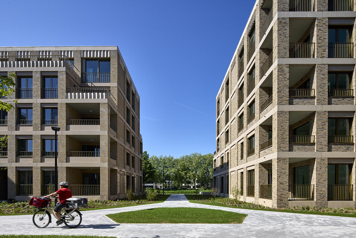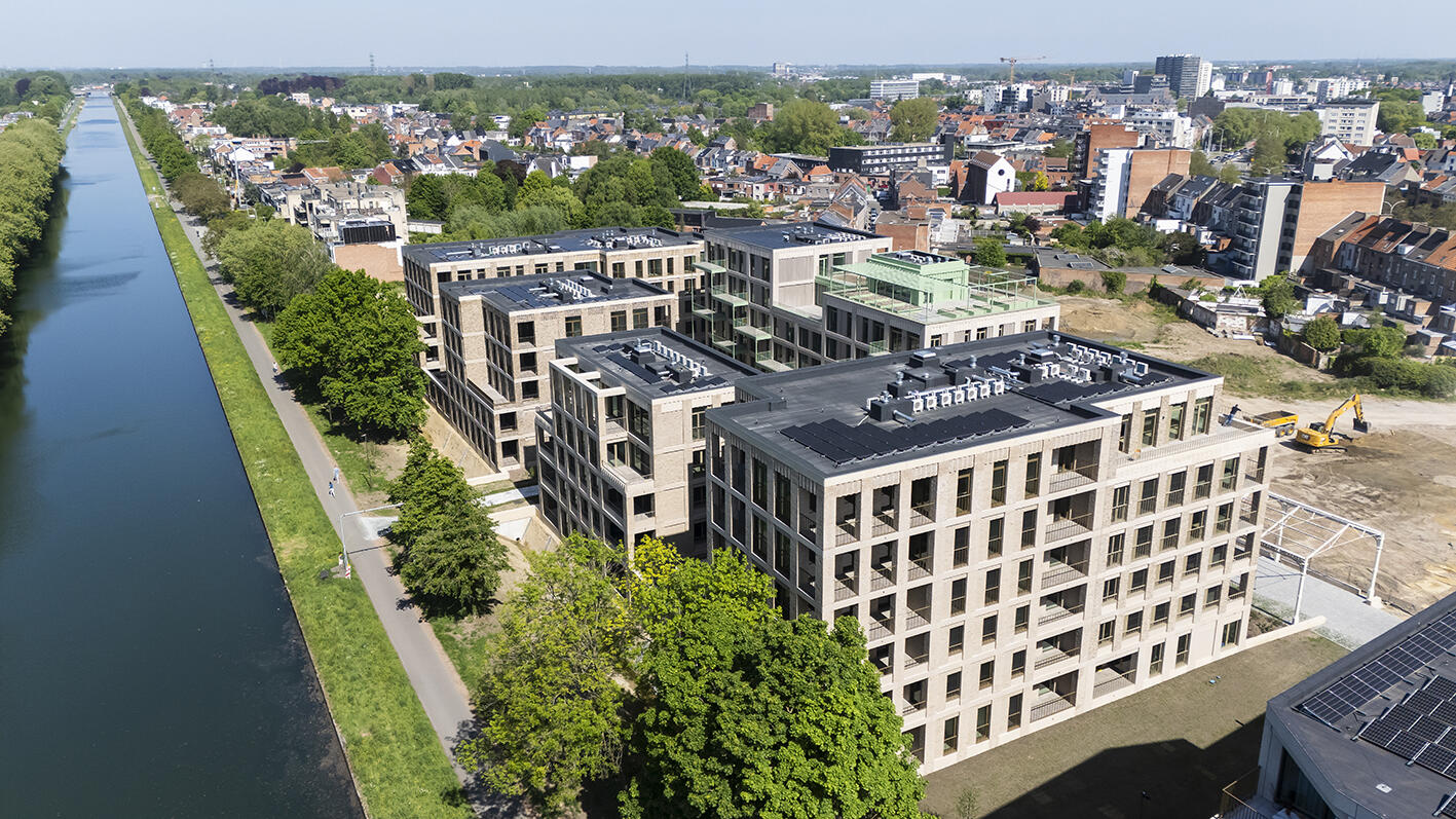 De tweede fase situeert zich tussen het nieuwe buurtpark en de Vaart, en vormt een essentieel sluitstuk in de ruimtelijke compositie van de wijk. De zes gebouwen, waaronder ook een cohousingvolume, zijn zorgvuldig gepositioneerd rond collectieve tuinen die aansluiten op het publieke groen. BRUT, Areal en OMGEVING ontwierpen de gebouwen als een familie: verwant in materialiteit, maar elk met een eigen karakter. De baksteenarchitectuur refereert aan het industriële verleden van de plek, zonder historiserend te zijn. Erkers, diepe terrassen en een gevarieerd gevelritme zorgen voor een levendig en humaan straatbeeld.