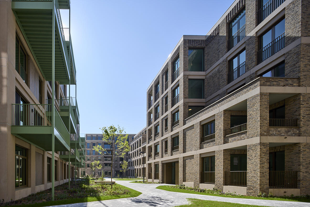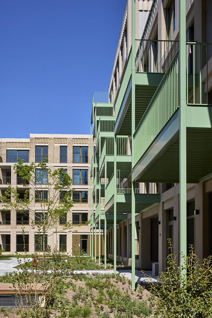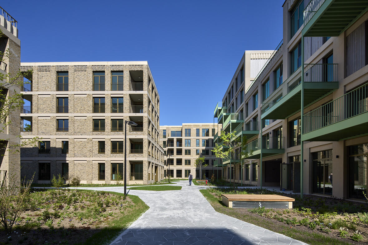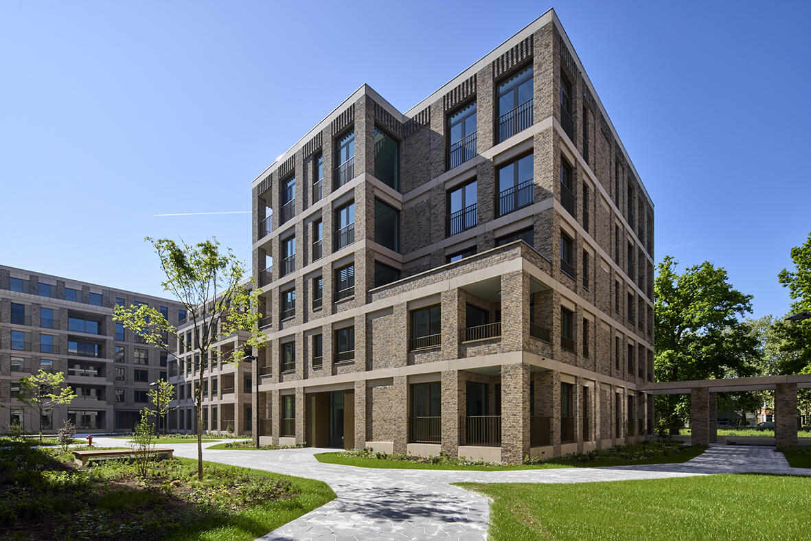 De tweede fase situeert zich tussen het nieuwe buurtpark en de Vaart, en vormt een essentieel sluitstuk in de ruimtelijke compositie van de wijk. De zes gebouwen, waaronder ook een cohousingvolume, zijn zorgvuldig gepositioneerd rond collectieve tuinen die aansluiten op het publieke groen. BRUT, Areal en OMGEVING ontwierpen de gebouwen als een familie: verwant in materialiteit, maar elk met een eigen karakter. De baksteenarchitectuur refereert aan het industriële verleden van de plek, zonder historiserend te zijn. Erkers, diepe terrassen en een gevarieerd gevelritme zorgen voor een levendig en humaan straatbeeld.