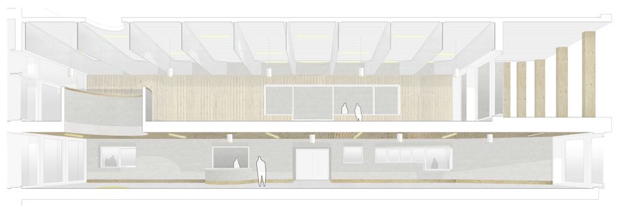 “We willen een groot publiek huis neerzetten dat zijn bewoners en gebruikers uitdaagt en verwelkomt, met een eigen karakter, een warme uitstraling en goede akoestiek”, aldus de ontwerpers.