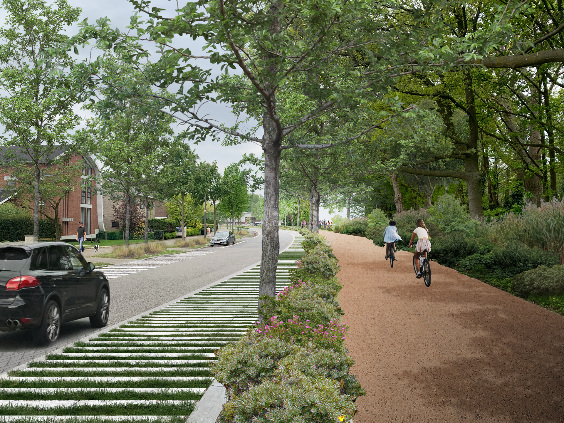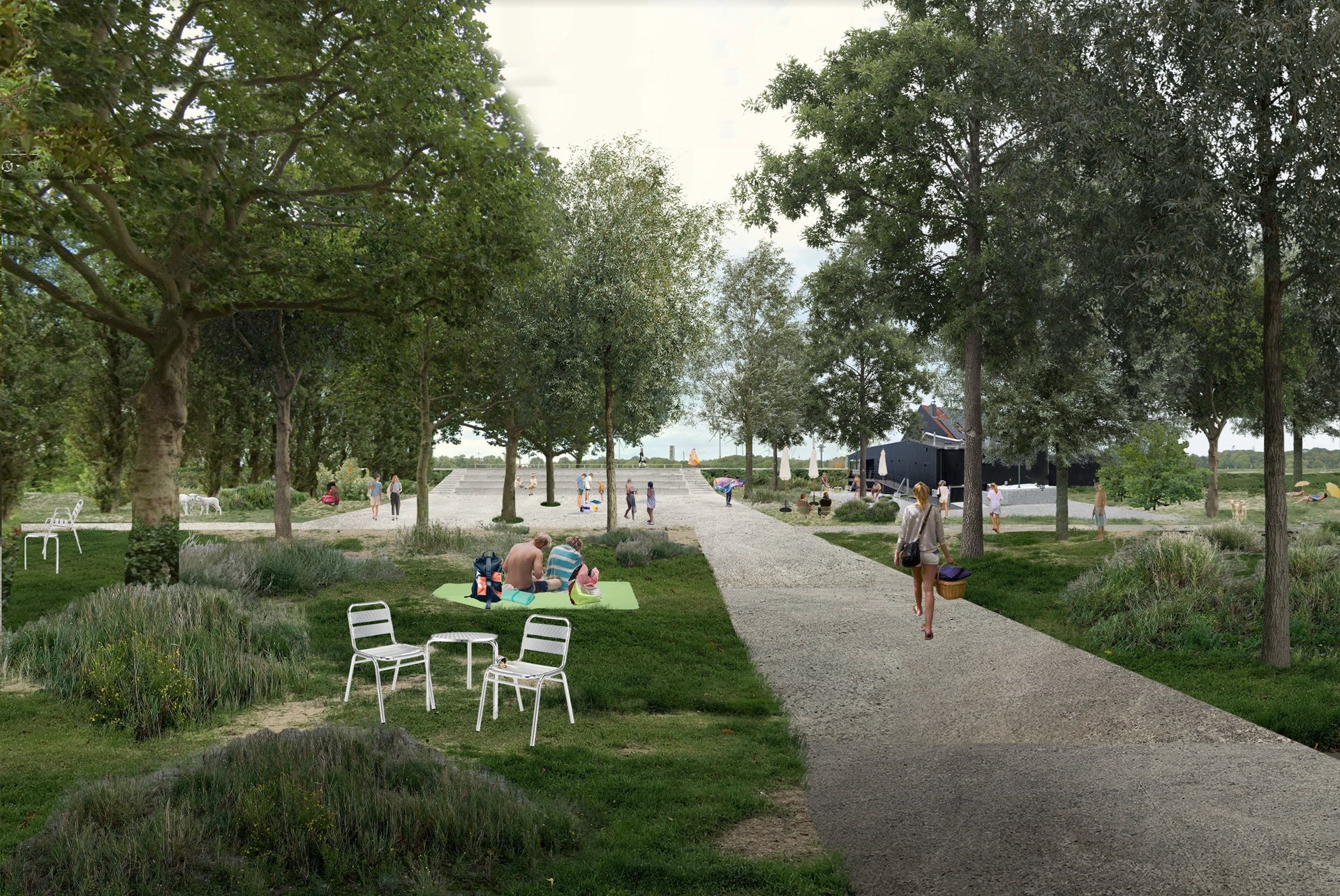 - Binnendijks biedt een subtiel reliëf mogelijkheden voor wateropvang en trage infiltratie. Bomen worden maximaal behouden en er ontstaat een gevarieerde flora en fauna. Buitendijks wordt het kenmerkende slikken- en schorrenlandschap zoveel mogelijk behouden en waar mogelijk uitgebreid, want dit diverse en duurzame oeverlandschap zorgt voor een unieke beleving langs de Schelde.