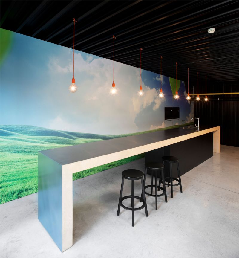 Waar vroeger de refter van de arbeiders en de rokersruimte was, werd een nieuw kantoor met vergaderzalen gebouwd. De vroeger zeer lage ruimte werd door het creatief omspringen met de bestaande constructie omgevormd tot een ruimte met een aangename hoogte en maximale ruimtelijkheid. In de bedrijfshal zelf werd een tussenvloer geplaatst die zowel de refter als de aansluitende patio omvat.