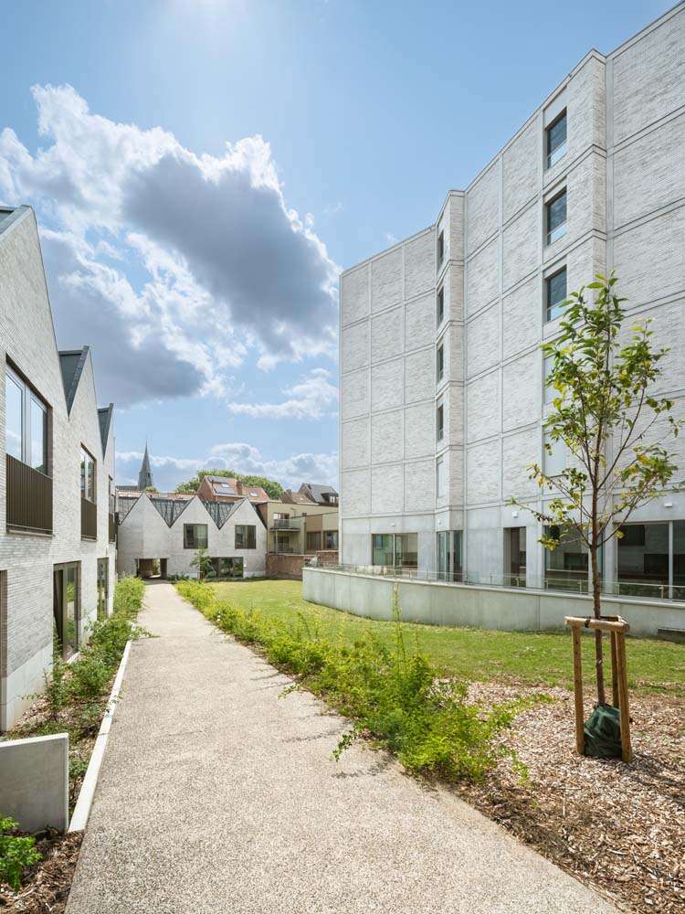 In het hart van Leuven heeft de voormalige Acco-site plaatsgemaakt voor Burenberg, een nieuwe woonbuurt met een uitgesproken architecturale diversiteit. Het project, gerealiseerd met betrokkenheid van onder meer HOUBEN, bundelt dertien afzonderlijke gebouwen binnen één globale werforganisatie. Die keuze vertaalt zich in een coherent geheel, ondanks de diversiteit aan ontwerpen.