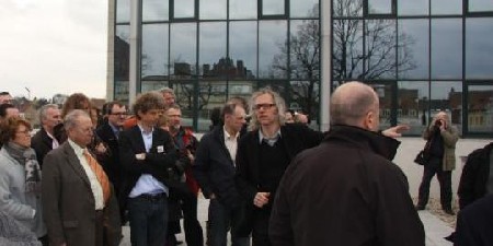 De namiddag startte met een bezoek aan de gebouwen van en nabij het Kortrijkse muziekconservatorium. Architect Geert Pauwels van Dial Architects gaf meer uitleg over de manier waarop hij, binnen een algemeen masterplan, achtereenvolgens de radio opnamestudio transformeerde naar een concertstudio en concertzaal "De Kreun" realiseerde met de bedoeling om zo op lange termijn te komen tot een volledig geïntegreerd Kortrijks muziekcentrum.