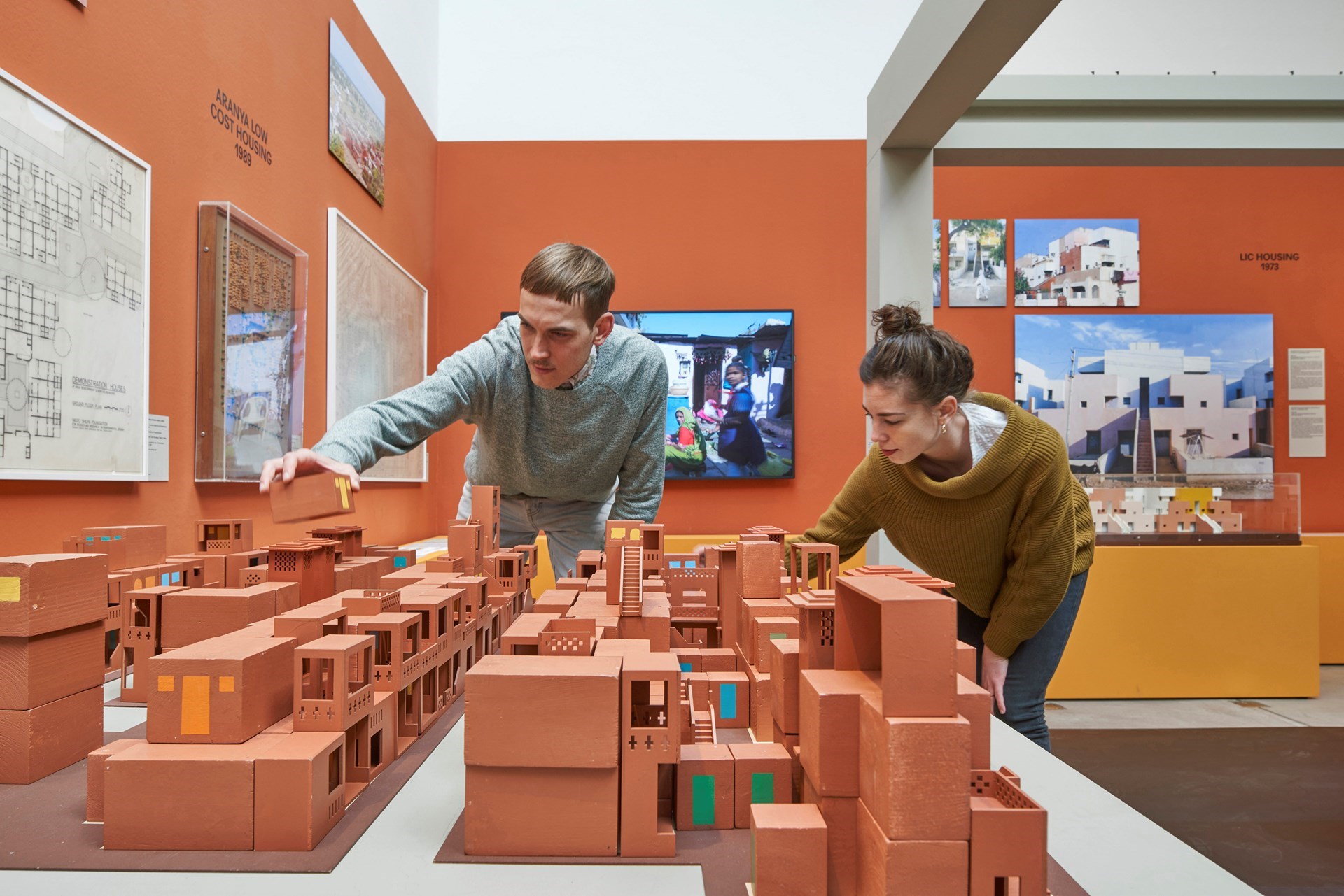 Tot deze projecten behoren baanbrekende gebouwen zoals het Indian Institute of Management (1977-92); Sangath (1980), Doshi’s eigen architectenbureau; en Aranya, het beroemde project voor sociale woongelegenheid. Onder de tentoongestelde voorwerpen bevinden zich tal van originele stukken, waaronder tekeningen, modellen en kunstwerken uit Doshi’s eigen archief en studio. Maar er zijn ook foto’s, er is film, en er zijn verschillende installaties op ware grootte. Een gedetailleerde tijdlijn biedt een overzicht van de carrière van de architect van 1947 tot vandaag. Daaruit blijken zijn nauwe relaties met andere invloedrijke architecten en opiniemakers, zoals Le Corbusier en Christopher Alexander.