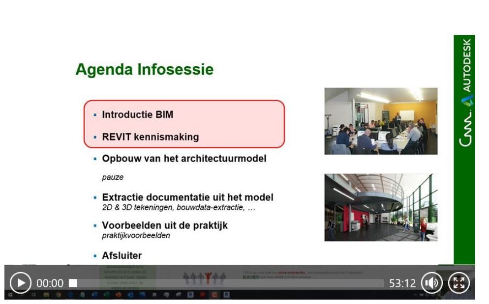 Onder impuls van de Corona-saga voorjaar 2020 kan de regelmatig herhaalde C3A-Revit Kennismakings-Infosessie in deze periode niet doorgaan in het C3A-cursuslokaal, maar als compensatie is deze infosessie als een reeks van drie opeenvolgende Video-opnames uitgewerkt. Zodat geïnteresseerden toch een gedetailleerde klare kijk kunnen krijgen op de mogelijkheden met Revit en de bijhorende C3Awerkmethodiek.