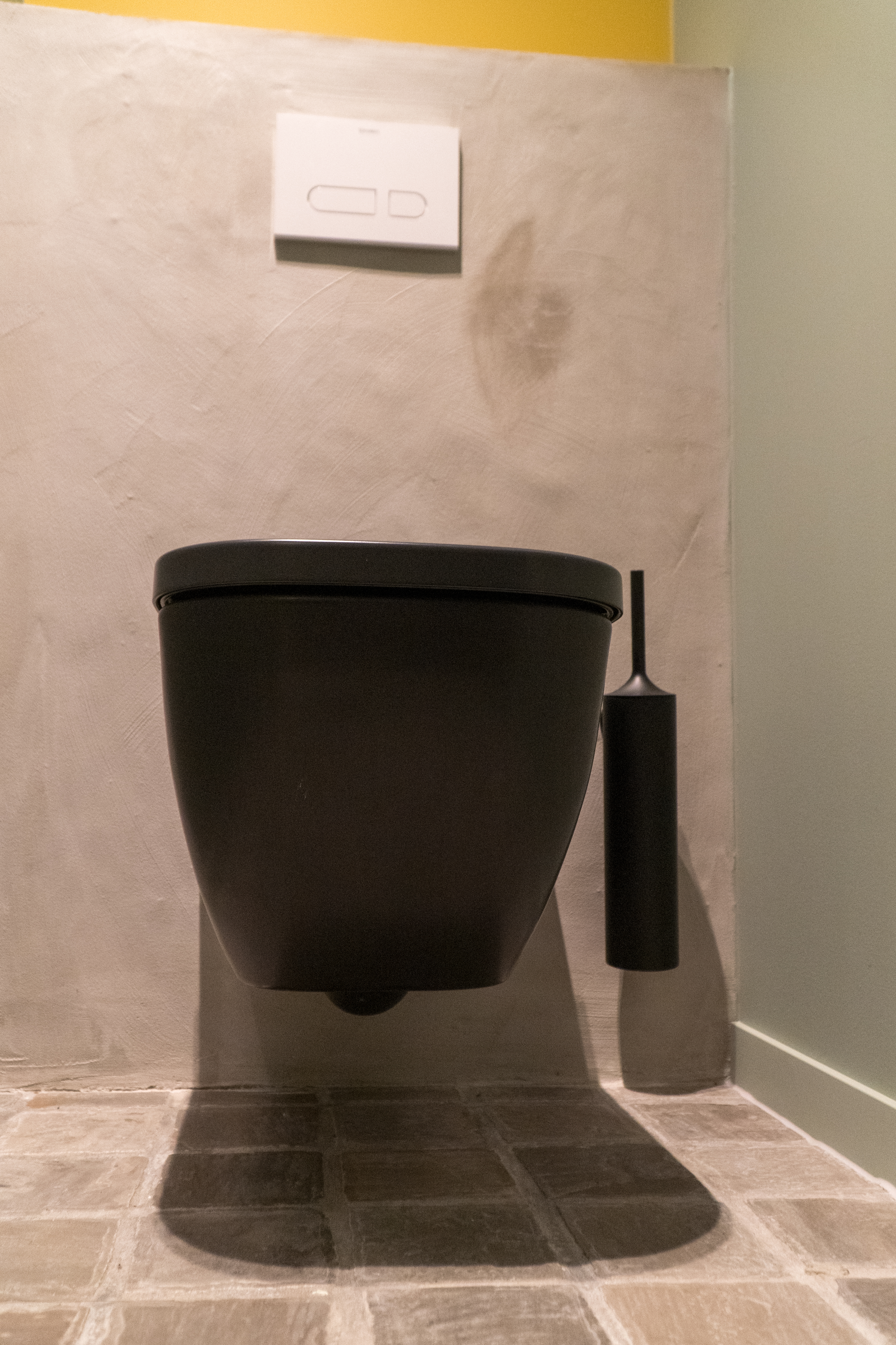 Zo werd bijvoorbeeld overal hoog kraanwerk geplaatst zodat de gasten makkelijk hun bidons kunnen vullen aan de wastafel. Wie gebruikmaakt van de openbare toiletten herkent meteen het gravelthema, een fietsdiscipline die momenteel zeer populair is. De vloer bestaat uit kasseien en er werd gekozen voor mat antracietkleurige toiletten, witte opzettafels uit de reeks Happy D.2 Plus en matzwarte accessoires ontworpen door de bekende designer Philippe Starck. De donkere kleuren passen perfect in het thema en maken de toiletten onderhoudsvriendelijker. Voor de accessoires in de badkamers werd dan weer gekozen voor chroom modellen uit de meest recente Starck-T-reeks.