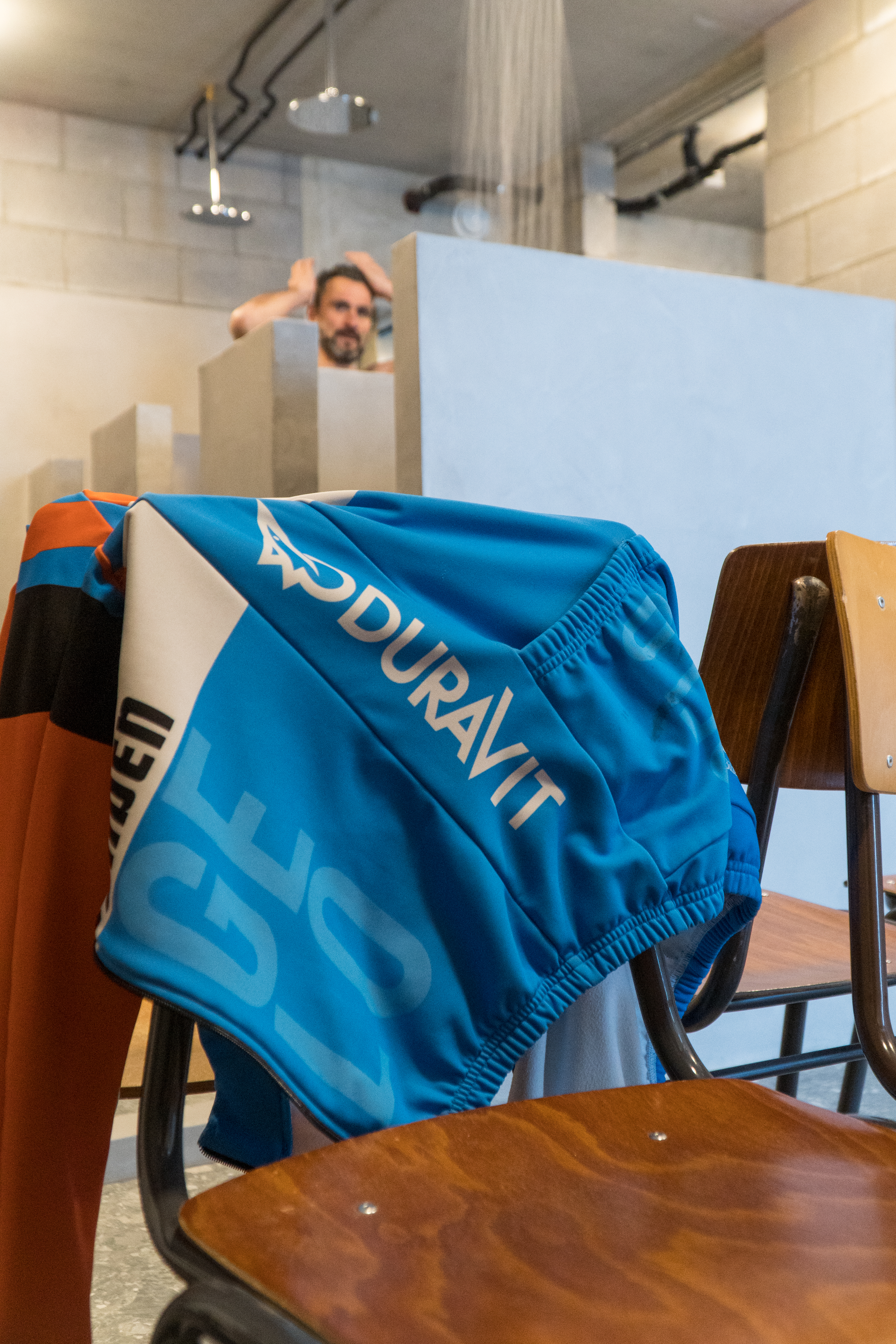 “Het Duravit-portfolio omvat het volledige spectrum van sanitaire producten: van de technologie achter de wand tot alle technische en designelementen om de badkamer in te richten. We zijn uitgegaan van de noden van de fietser en hebben op basis hiervan de juiste oplossingen gekozen”, vertelt Marketing manager Steve Souverijns van Duravit. “Steve heeft ons van minuut één volledig ontzorgd”, vertelt Peter Lantmeeters. “Hij heeft geluisterd naar onze visie en kwam keer op keer met concrete voorstellen die passen binnen het concept dat we voor ogen hadden. Het was een plezier om suggestie na suggestie eenvoudigweg te kunnen weerhouden en zo snel progressie te maken.”