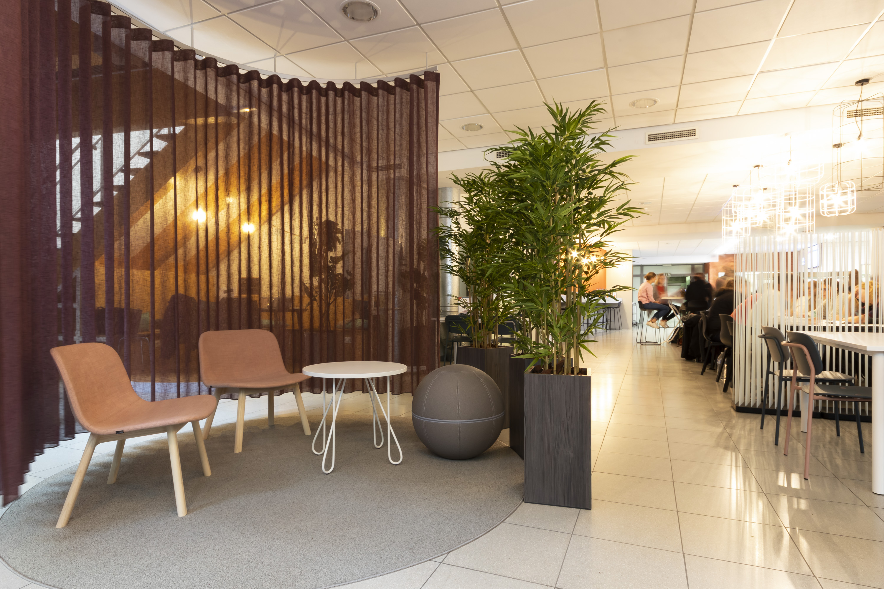 Anagram steekt de klassieke schoolstoel in een nieuwe en fris jasje. Dankzij de Colours by Materia kan je de stoel bovendien perfect combineren met andere stoffen en materialen. De stoel maakt een statement zonder al te opvallend te zijn. De transformatie was alleszins een groot succes. De ruimte is ondertussen zo populair gebleken dat er al extra meubilair is besteld om meer gebruikers toe te laten.