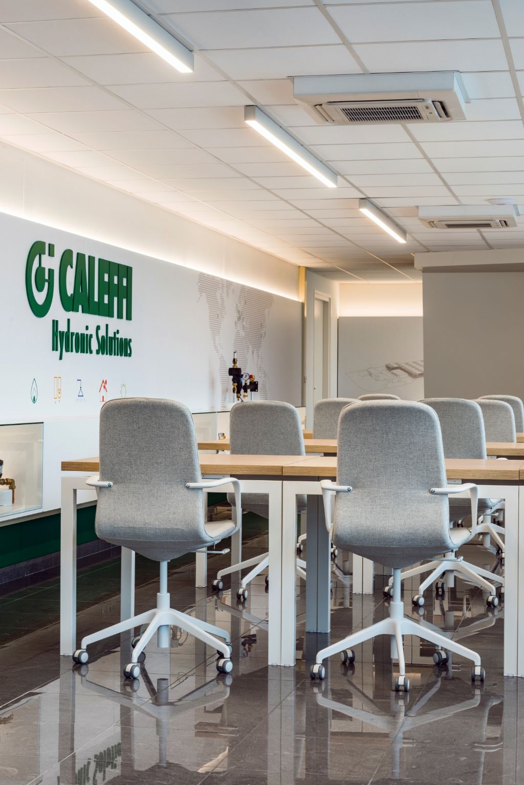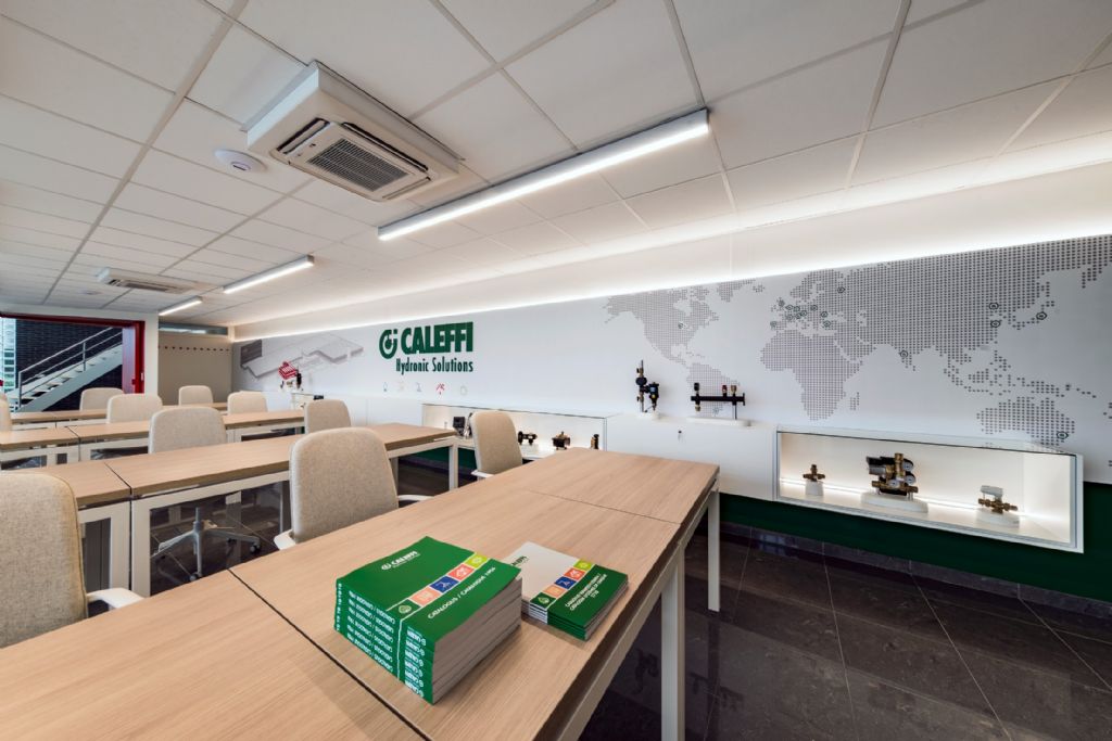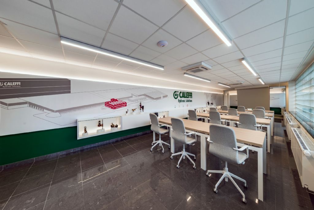 Ook het trainingscentrum werd in een nieuw jasje gestoken. Hier kunnen professionals uit de bouwsector – gaande van installateurs tot vertegenwoordigers van groothandels en fabrikanten en andere stakeholders – kennis maken met alle nieuwe en bestaande systemen en producten van Caleffi.