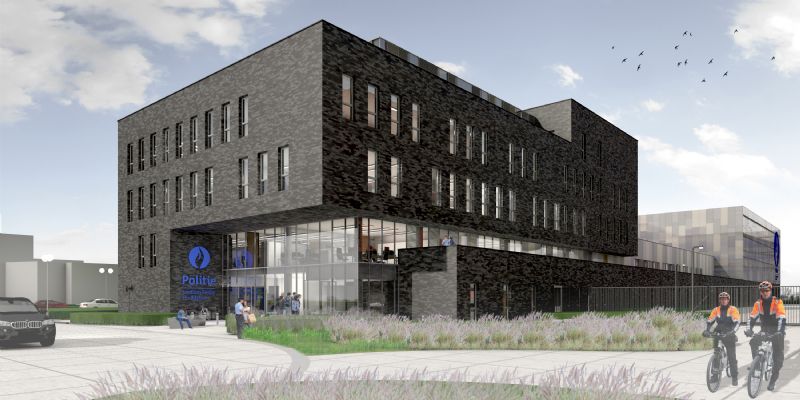Voor het politiegebouw werkten de architecten volgens dezelfde filosofie samen met het Gentse architectenbureau AVAPARTNERS. De uitvoering van het politiegebouw gebeurt volgens de DBM-formule door Kumpen nv, Democo en Demtec, voor het brandweergebouw wordt dat team nog uitgebreid met Strabag.