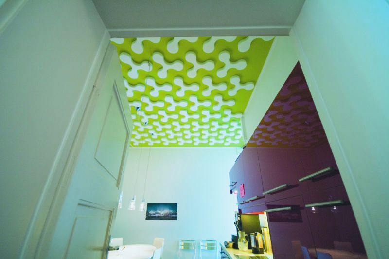 Op de akoestische platen brengt Caparol een fijn gestructureerde pleisterafwerking – met marmerkorrels – in twee lagen aan. De afwerking wordt dus op een speciale wijze gerealiseerd, waardoor de open structuur van het materiaal bewaard blijft. Bovendien levert dit een glad, naadloos en wit resultaat op. CapaCoustic Fine vormt dus volgens Caparol zowel een functioneel als een esthetisch overtuigende oplossing.