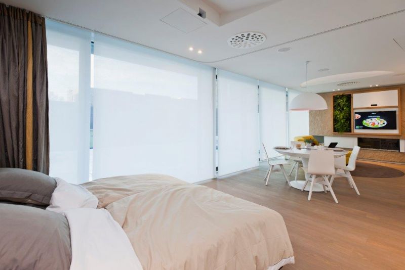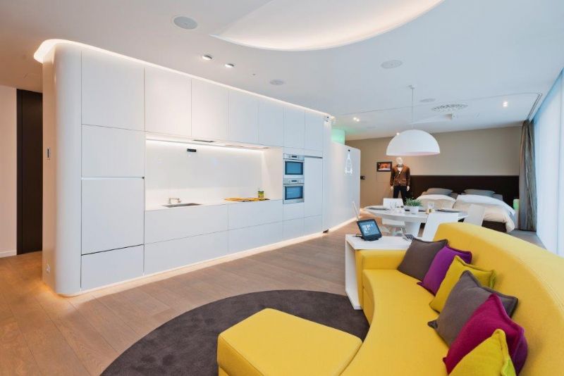 In de zorgwoning van de toekomst willen de partners laten zien hoe veel makkelijker zelfstandig wonen op termijn zal zijn. De demoruimte laat zien hoe hulp op afstand wordt geïntegreerd in een woning die deel kan uitmaken van een WZC, maar evengoed een vernieuwde kamer kan zijn van een bestaande woning. “Essentieel is de beleving van de ruimte,” legt Thijs uit. “Niets wijst hier op een medische sfeer of laat afhankelijkheid van buitenstaanders vermoeden. We hebben alle ruimtes in Carehome of the Future dan ook zorgvuldig opgevat als kamers met een hotel-sfeer. Bewoners moeten te allen tijde het gevoel hebben thuis te zijn.” Bovendien zorgen een aantal technologische ingrepen dat verpleging of familiehulp niet altijd fysiek aanwezig hoeft te zijn. Zo verschijnt informatie over medicatie op de display in de tafel wanneer het medicijn in kwestie op de tafel ligt. Met eenvoudige handgebaren kan de bewoner eten bestellen of de familie bellen. Ramen en zonnewering openen en sluiten gebeurt met een druk op de knop. Overal is plaats voor een rolstoel, al doen die ergonomische ingrepen nooit medische betutteling vermoeden. De woning is voorzien op erg uiteenlopende types van bewoning, kortom. Ze kan perfect dienen voor een jong dynamisch koppel, maar is even goed voorzien op minder mobiele ouderen of mensen met een fysieke beperking.