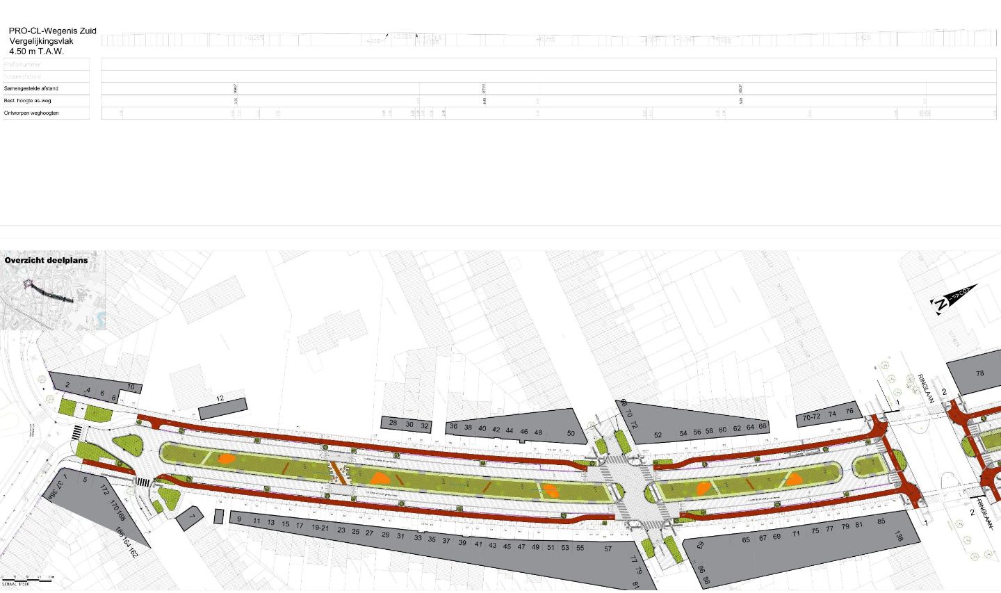Ook bovengronds vinden de nodige aanpassingen plaats. “De middenberm wordt een 8 meter brede en 50 centimeter diepe groenzone met infiltratiebekken dat op zijn beurt omgeven wordt door verschillende soorten beplanting”, aldus Catry. “Daarbij worden twee boomtypes voorzien. ‘Dragers’ of bomen met een lange levensduur die geschrankt worden aangeplant. Daarnaast komen ‘ondersteuners’, kleinere bomen met een minder lange levensduur, die willekeurig aangeplant worden.”