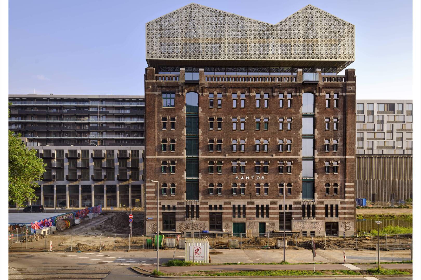 Het monumentale pakhuis Santos op Katendrecht in Rotterdam is na een jarenlange transformatie geopend als de nieuwe locatie van het Nederlands Fotomuseum. Architectenbureaus RENNER HAINKE WIRTH ZIRN ARCHITEKTEN en WDJARCHITECTEN herbestemden de voormalige koffieopslag uit 1901-1902 om een hoogwaardig onderkomen te bieden aan de nationale collectie van het Nederlands fotografisch erfgoed. Die omvangrijke verzameling omvat ruim 6,5 miljoen objecten die de geschiedenis van Nederland representeren. De architecturale ingreep kenmerkt zich door het uithollen van een centrale vide in de bestaande structuur en de toevoeging van een twee verdiepingen hoge aluminium kroon op het dak.