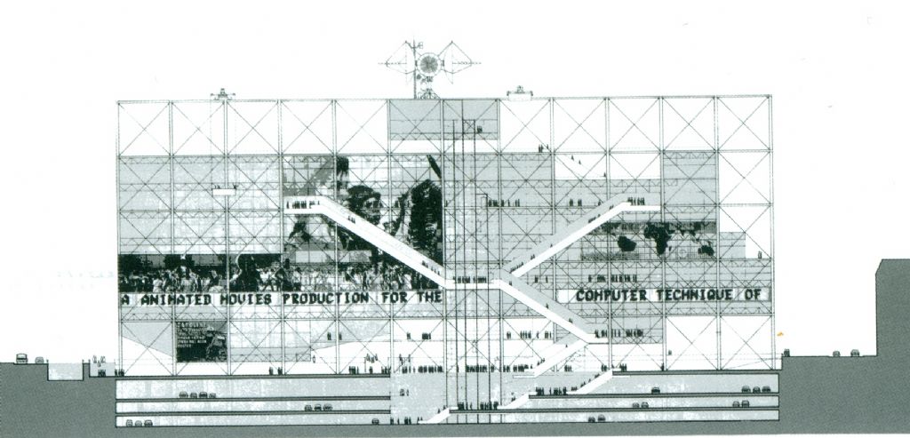 Piano en Rogers omschreven hun inzending als een plaats voor informatie, ontspanning “fun” en cultuur. Op de tekening stond boven op het dak een mega schotelantenne en op de gevel waren beelden en teksten aangebracht. De gevel werd een immens infoscherm te vergelijken met de Time Square in New York. De grens tussen binnen en buiten werd een drager van beelden en informatie. In feite kunnen wij nu pas met de grote Barco schermen en projectie bereiken wat de architecten toen voor ogen hadden.