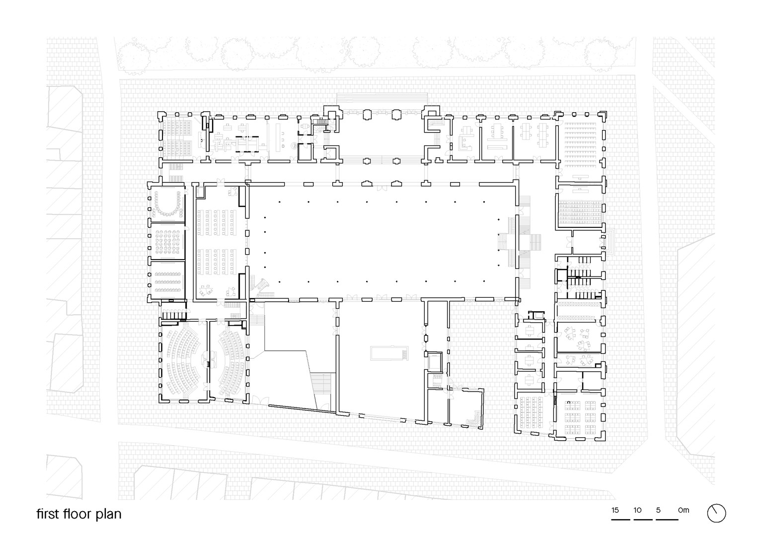 De binnenruimtes zijn gerenoveerd zodat ze nieuwe actieve leermethoden kunnen ondersteunen met multifunctionele ruimtes zoals het leercentrum, de klaslokalen en auditoria. Er is een innovatief technisch centrum bedacht om het gebouw energieonafhankelijk te maken. Alle gebouwtechnieken hebben bovendien een upgrade gekregen en de brandveiligheid werd subtiel geoptimaliseerd door o.a. verborgen sprinklersystemen in de staalconstructies en bijkomende structurele verstevigingen.