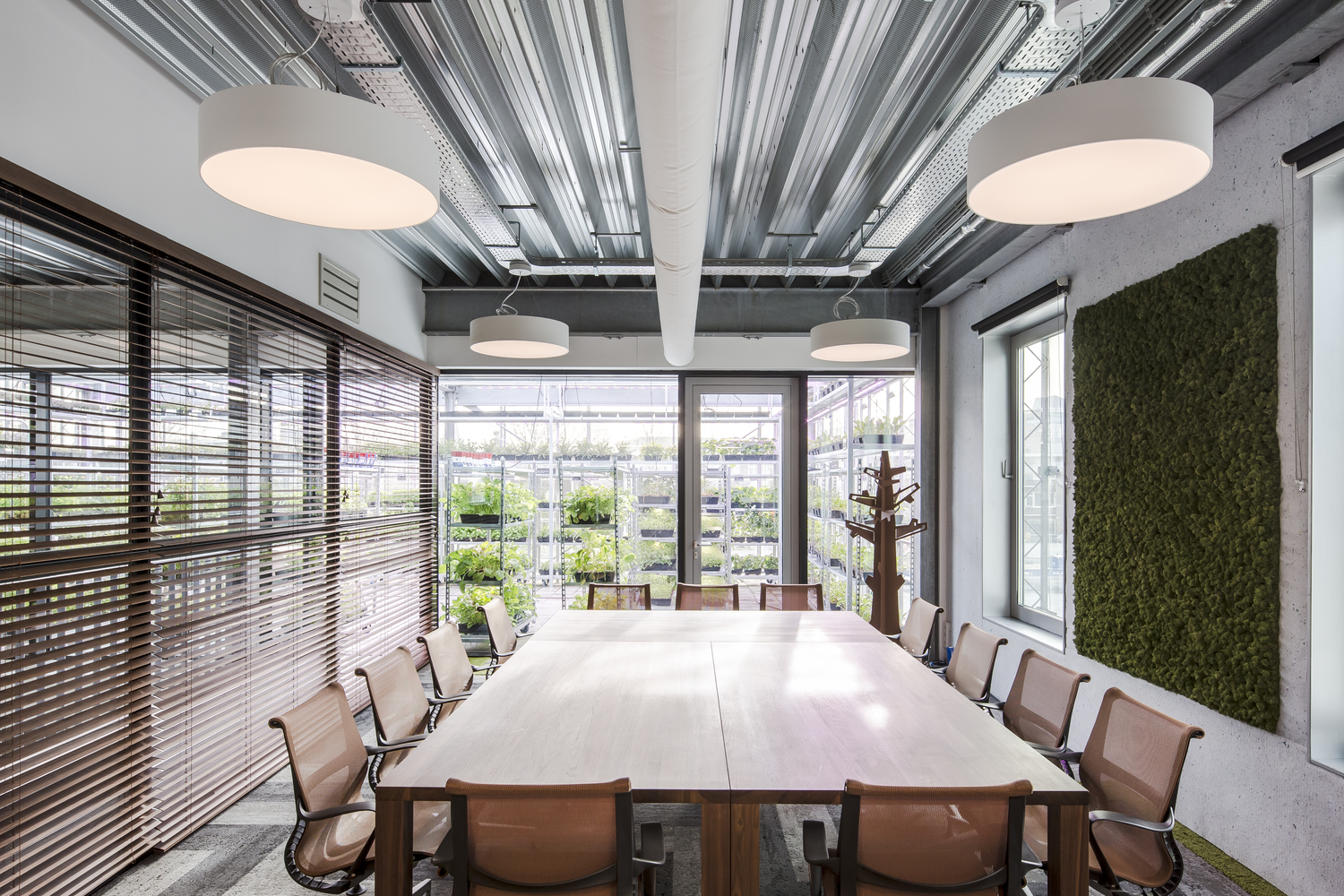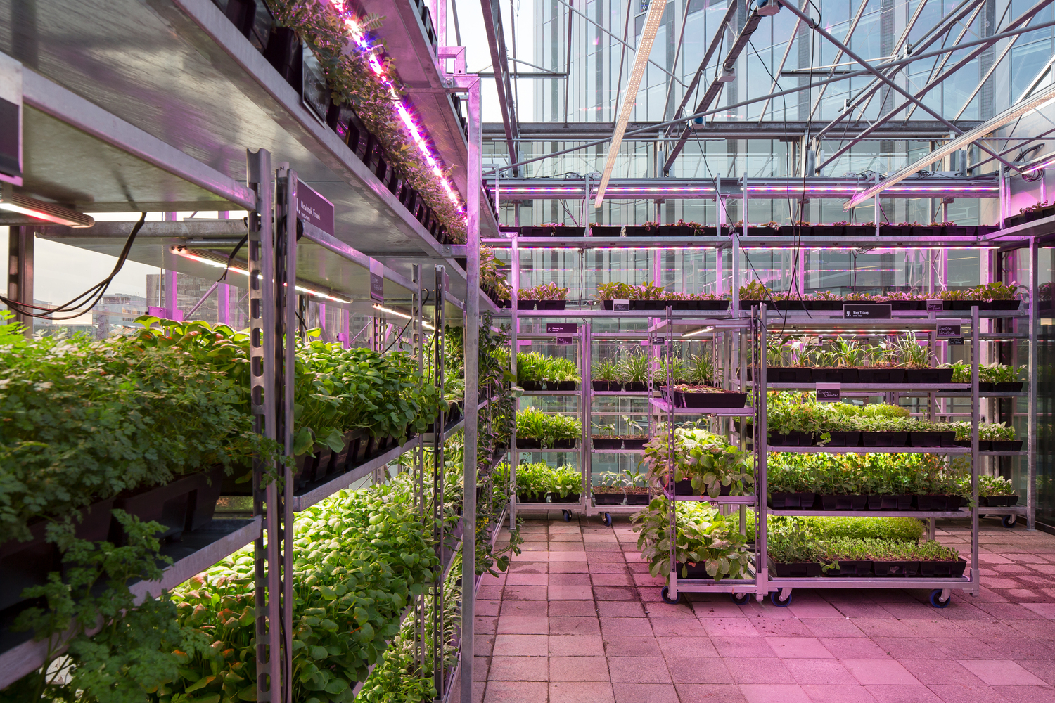 De urban farm bevindt zich in de verticale serre van tachtig vierkante meter. Die ligt op de verdieping naast de vergaderruimtes. Daar kweekt men groenten en kruiden voor de keuken van het restaurant. Een vide in het paviljoen maakt de publiektoegankelijke serre goed zichtbaar vanuit het restaurant beneden. Ook grote groenwanden dragen bij aan de beleving van The Green House. Het dak van het paviljoen is gevuld met zonnepanelen.