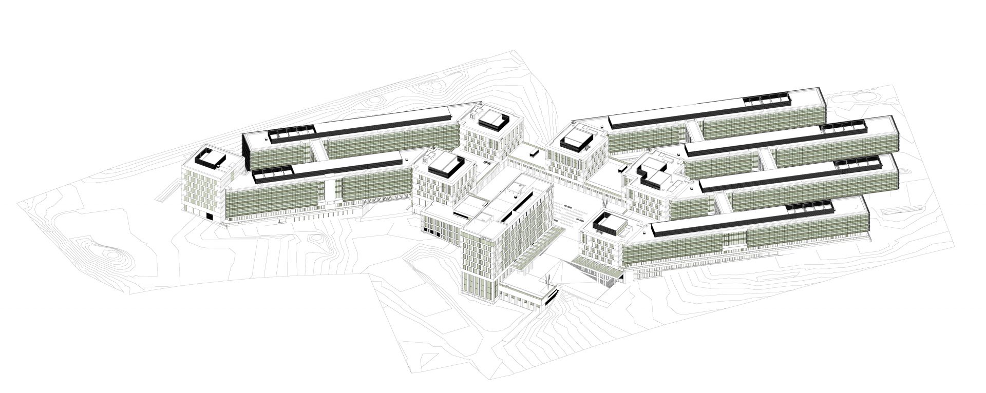 De ontwerpers van archipelago kozen ervoor om het CBTC te structureren rond een verkeersvrij plein dat fungeert als levendig middelpunt van het hele complex. Dit plein verbindt de verschillende toegangspunten en brengt alle 'publieke' functies – hotel, restaurants, winkels, conferentiecentrum – samen. Tegelijk benut het ontwerp de topografie van de site met een hoogteverschil van 14 meter, door het centrale plein bovenop een minerale sokkel te plaatsen waarin zich parkeerruimte en nutsvoorzieningen bevinden. Het geheel rust op deze robuuste basis en vormt met de glazen kantoorvleugels een uitgesproken hedendaags volume.