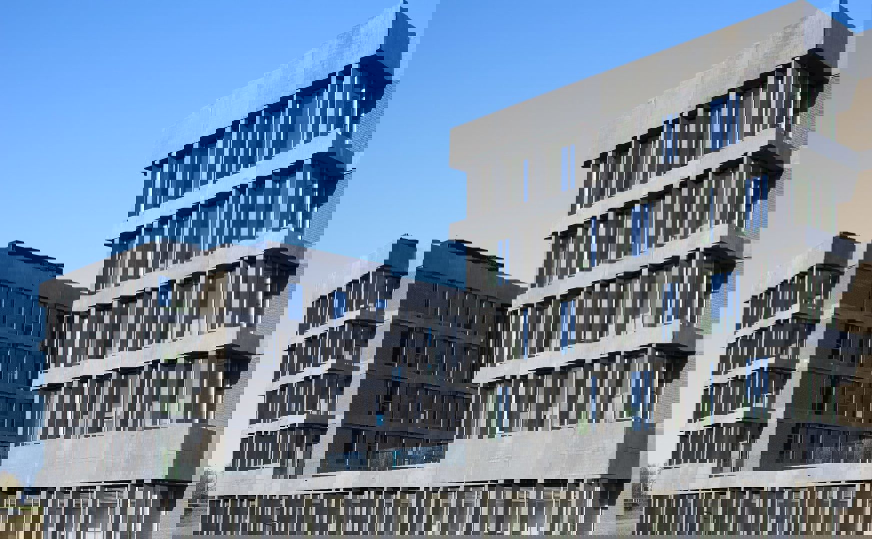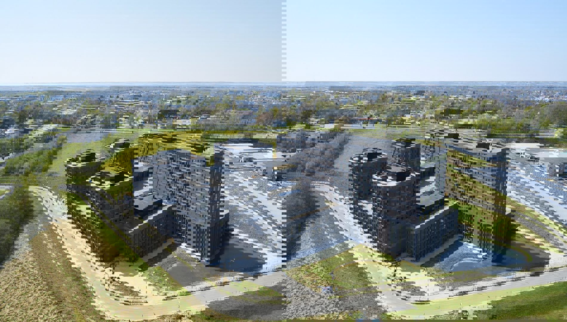 De ontwerpers wilden van bij het begin inzetten op duurzaamheid als integraal onderdeel van het project. Er werd gewerkt met hernieuwbare energie via fotovoltaïsche panelen, performante isolatietechnieken en passieve zonwering die architecturaal geïntegreerd werd. Een bijzonder aandachtspunt was het waterbeheer: het volledige regenwater wordt opgevangen en hergebruikt op het terrein, ook bij uitzonderlijke neerslag. Het water voedt de vijver, de gemeenschappelijke buitenruimte en de aanliggende infrastructuur, zonder belasting van het rioleringsnet.