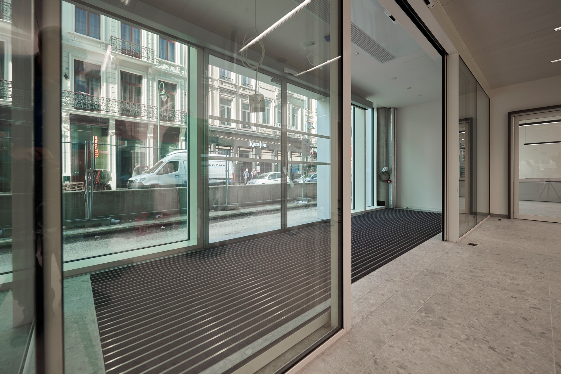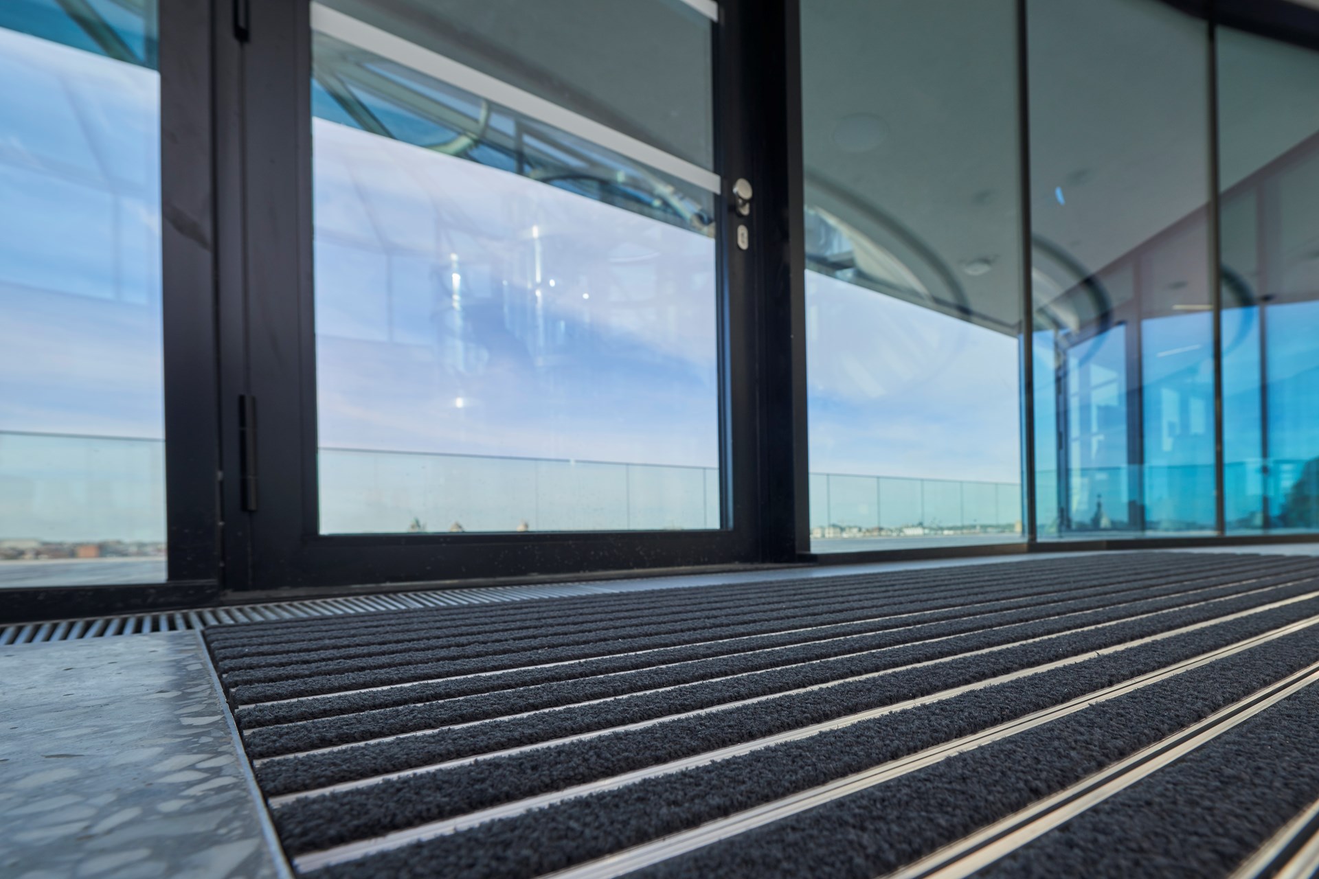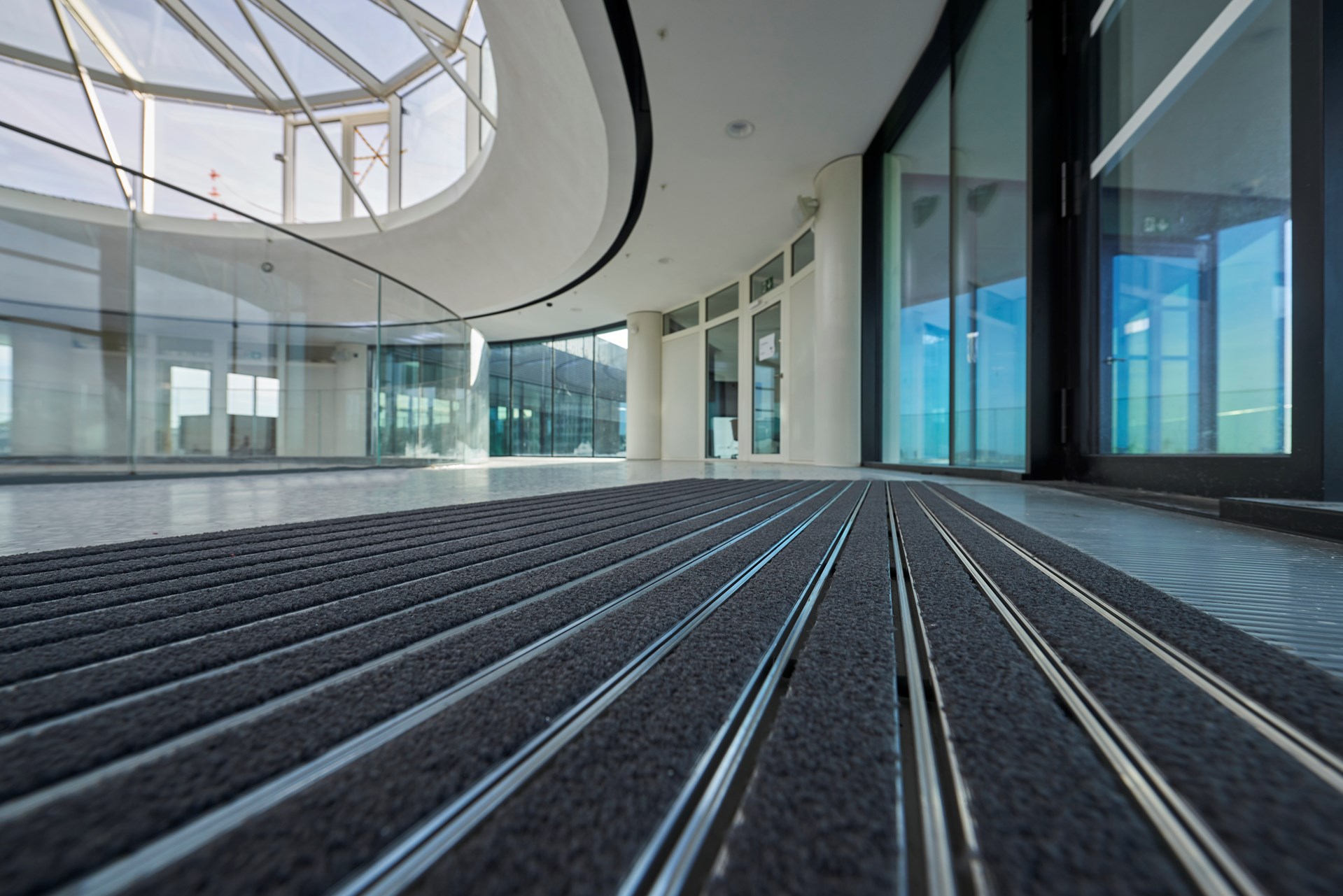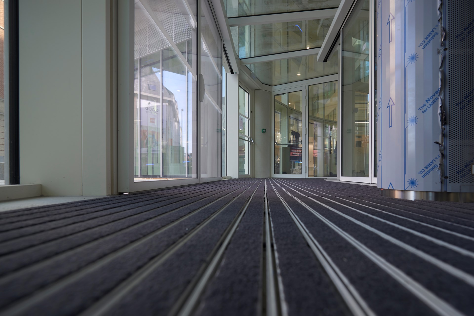 Bovendien levert emco verschillende inlagen en schoonloopzones van gerecycleerde ECONYL-garens. Daarnaast zijn de aluminium profielen van de entreematten recyclebaar en hoeven aluminium entreematten niet op de ondervloer verlijmd te worden. Dit draagt bij aan de verlaging van de uitstoot van voc’s.